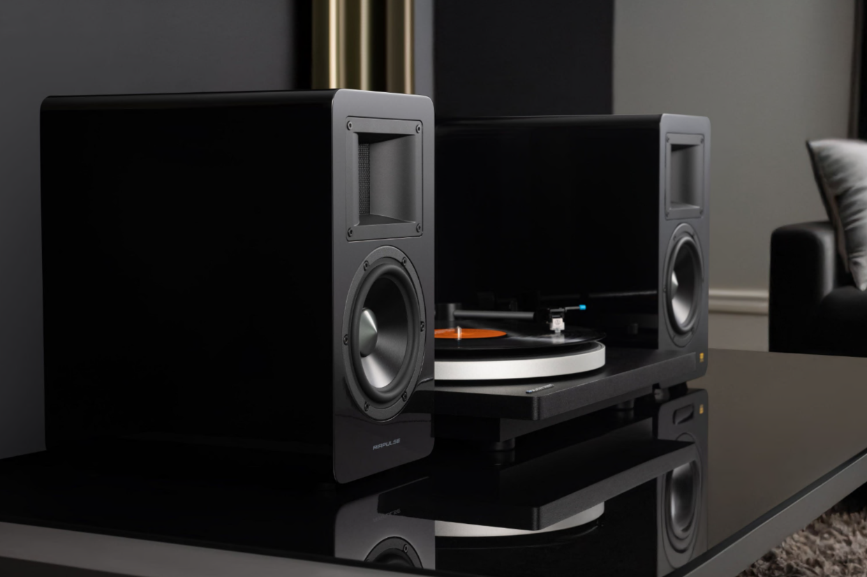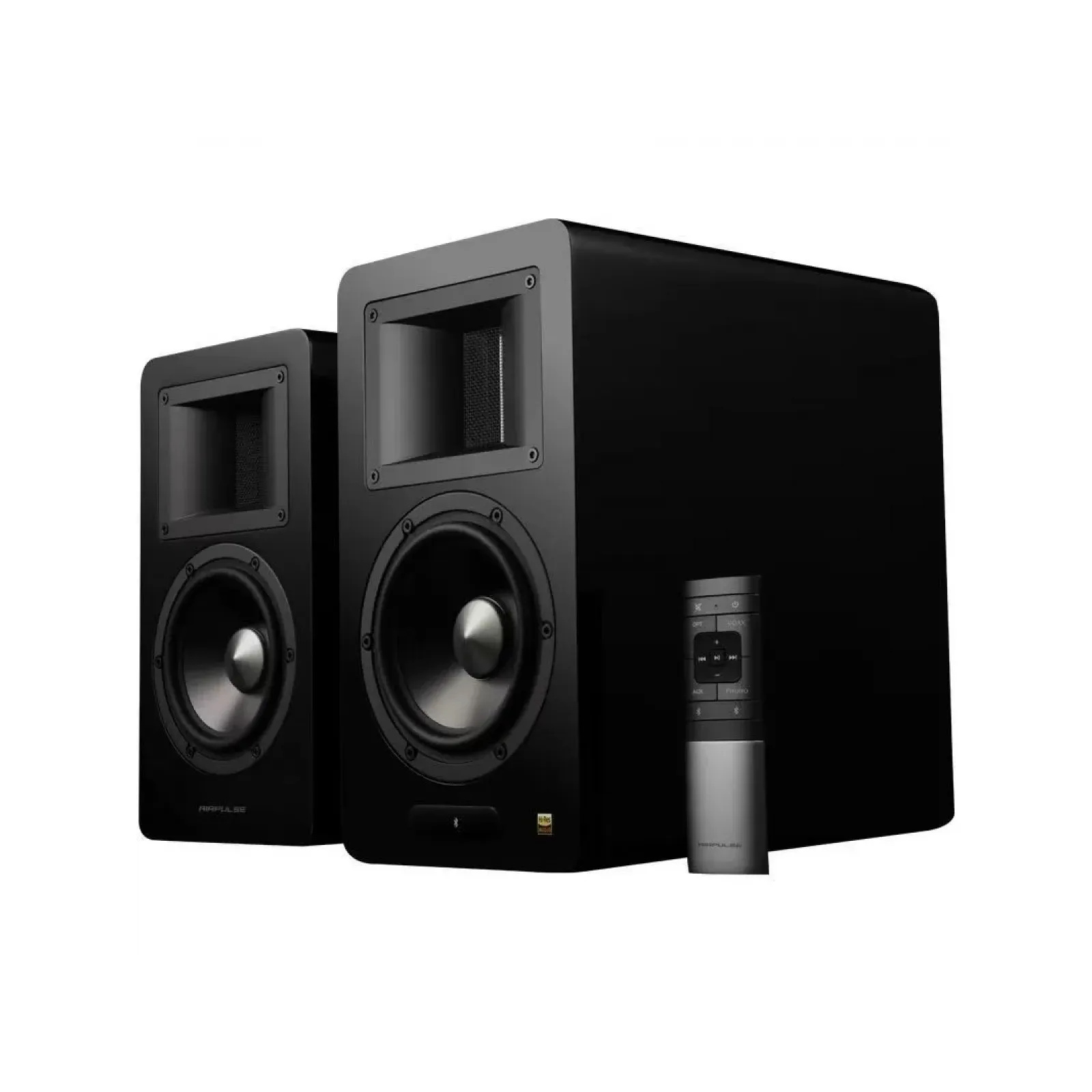 Airpulse by Edifier A200T Premium HiFi 130W Active Powered Bookshelf Speaker System - Black Horn-Loaded Ribbon Tweeters + 5.25" Aluminium Alloy Woofers - 46Hz-20kHz - Built-in Phono Preamp - RCA + Optical + Coax + Bluetooth inputs - Subwoof