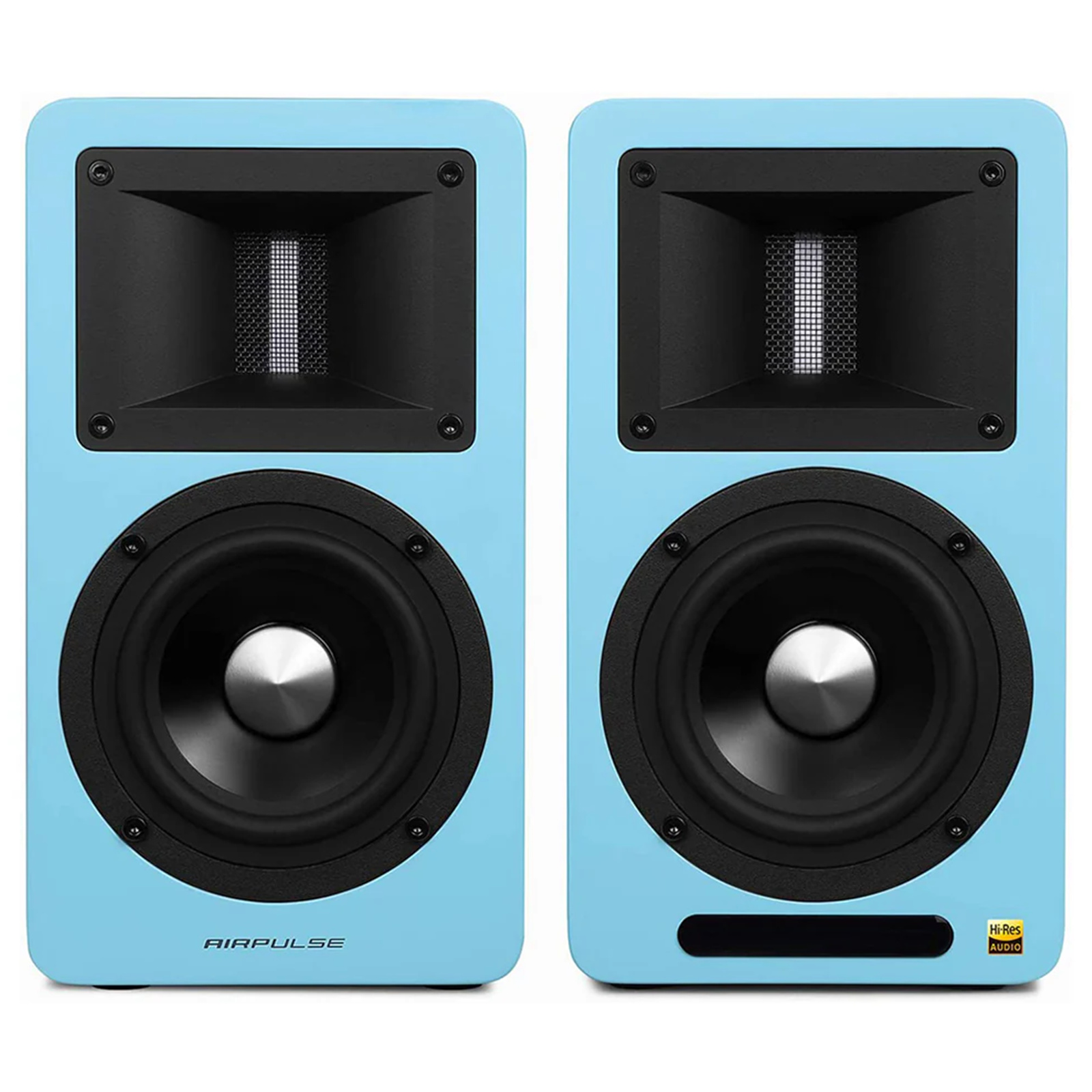 Airpulse A80 Premium HiFi 100W Active Powered Bookshelf Speaker System with Bluetooth - Tiffany Blue Horn-loaded Ribbon Tweeters + 4.5" Aluminium Cone Mid-Woofers - 52Hz-40kHz - RCA + USB + Optical + Bluetooth inputs - Subwoofer output - Hi
