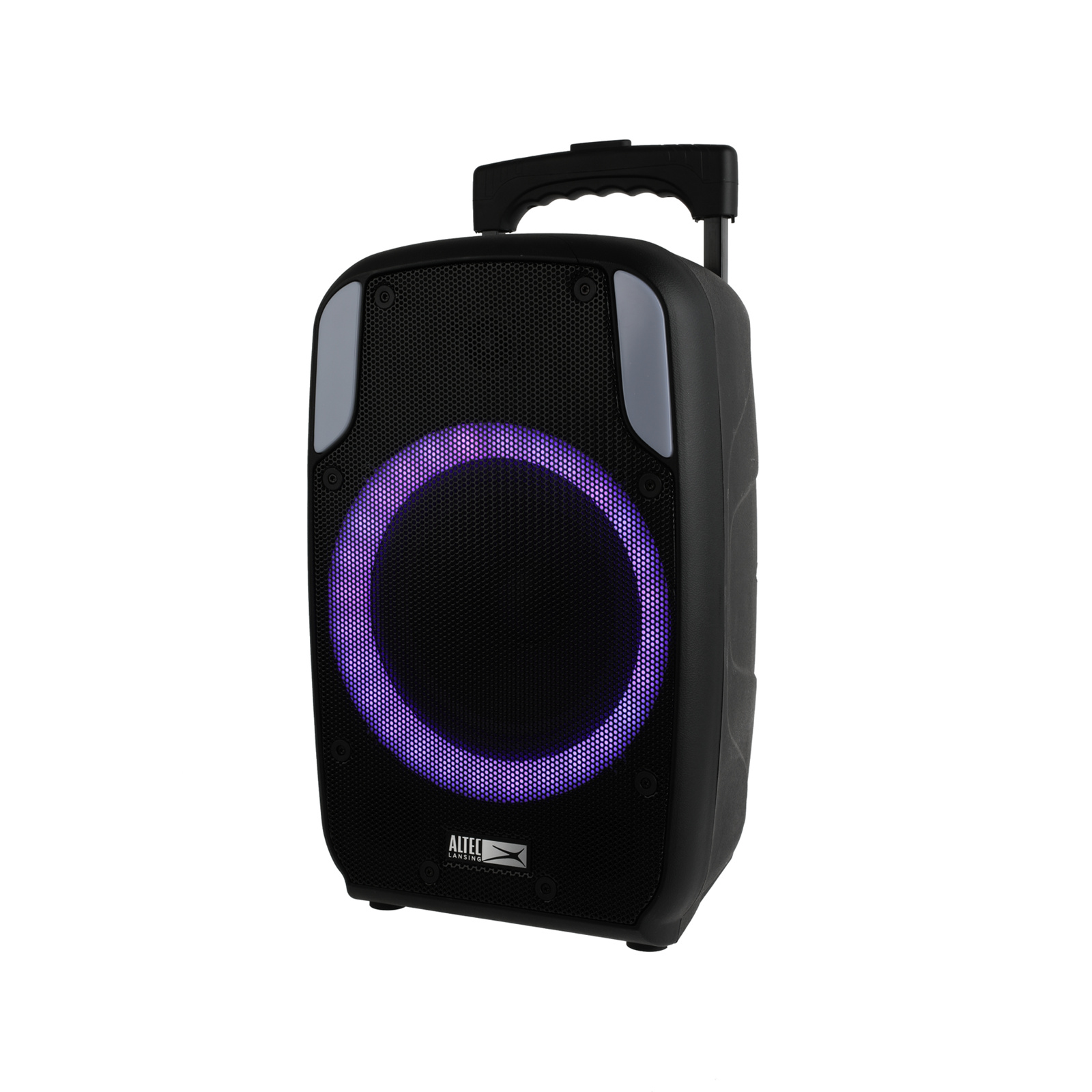 Grab and Go with the SoundRover 50 portable party speaker with signature Altec Lansing sound. With 50W peak power handling, multi-light party modes, and integrated carry handle and wheels, this speaker is the all-in-one party companion.