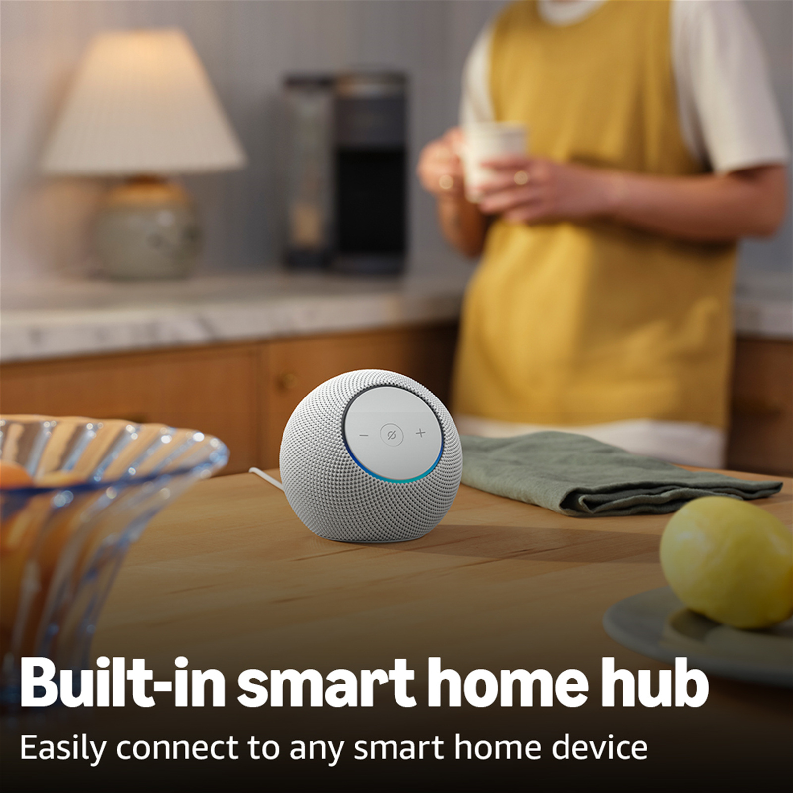MEET ECHO DOT MAX - Designed to deliver a rich sound experience. Enjoy audio bliss with room-filling sound that automatically senses your room's acoustics and fine-tunes playback. And it has a built-in smart home hub.