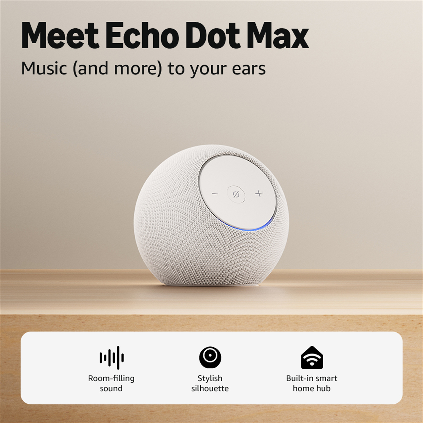 MEET ECHO DOT MAX - Designed to deliver a rich sound experience. Enjoy audio bliss with room-filling sound that automatically senses your room's acoustics and fine-tunes playback. And it has a built-in smart home hub.