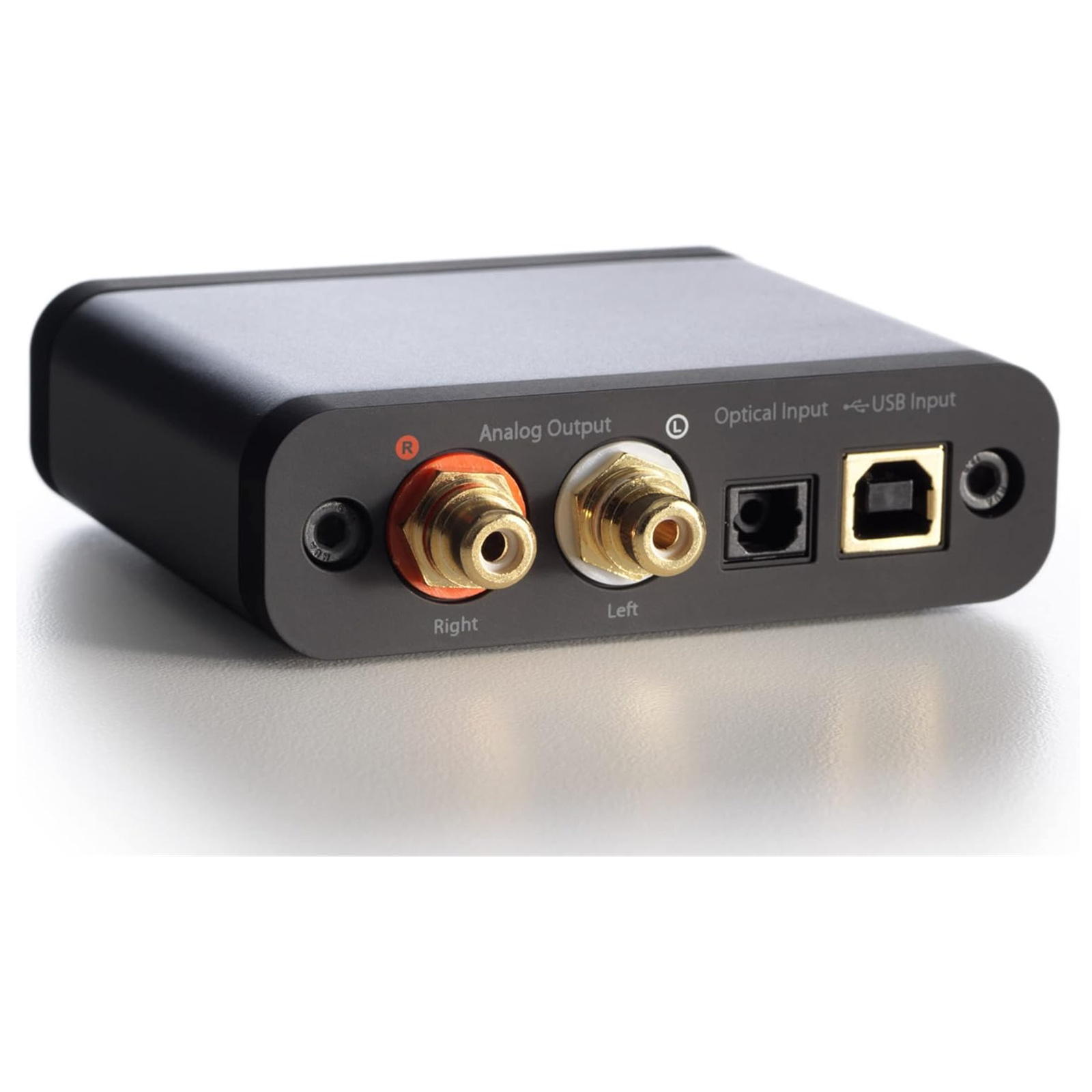 The D1 features both USB C and optical inputs as well as outputs for any audio system or headphones. The D1 DAC is the perfect way to get great-sounding music not only from your computer but also from your TV, Apple TV, DVD/BluRay player, or CD player. And since it's powered by USB C, D1 is also a high-quality portable computer headphone amplifier. And all of this fits in the palm of your hand.