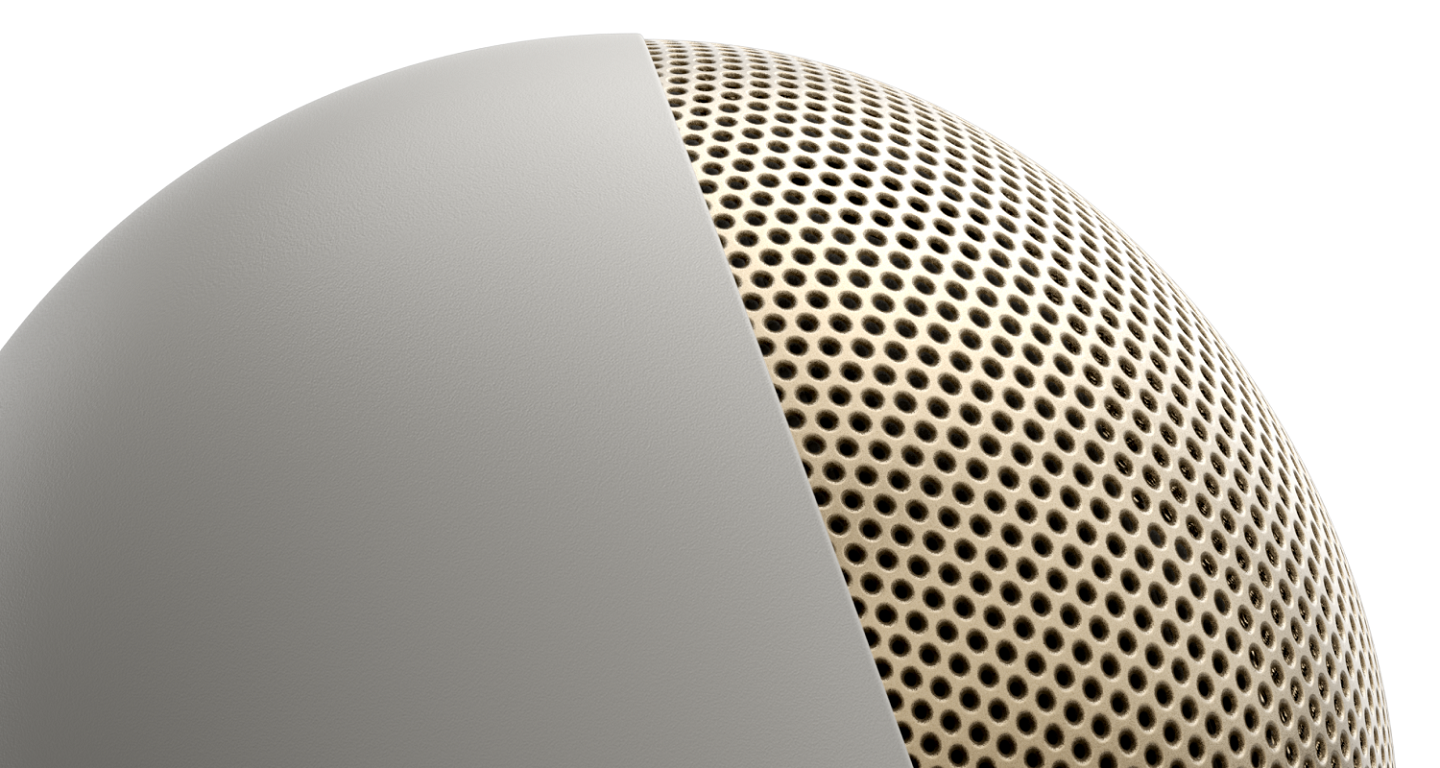 The streamlined speaker now has a 20‑degree upward tilt to direct sound waves towards your head, away from objects that might obstruct them.