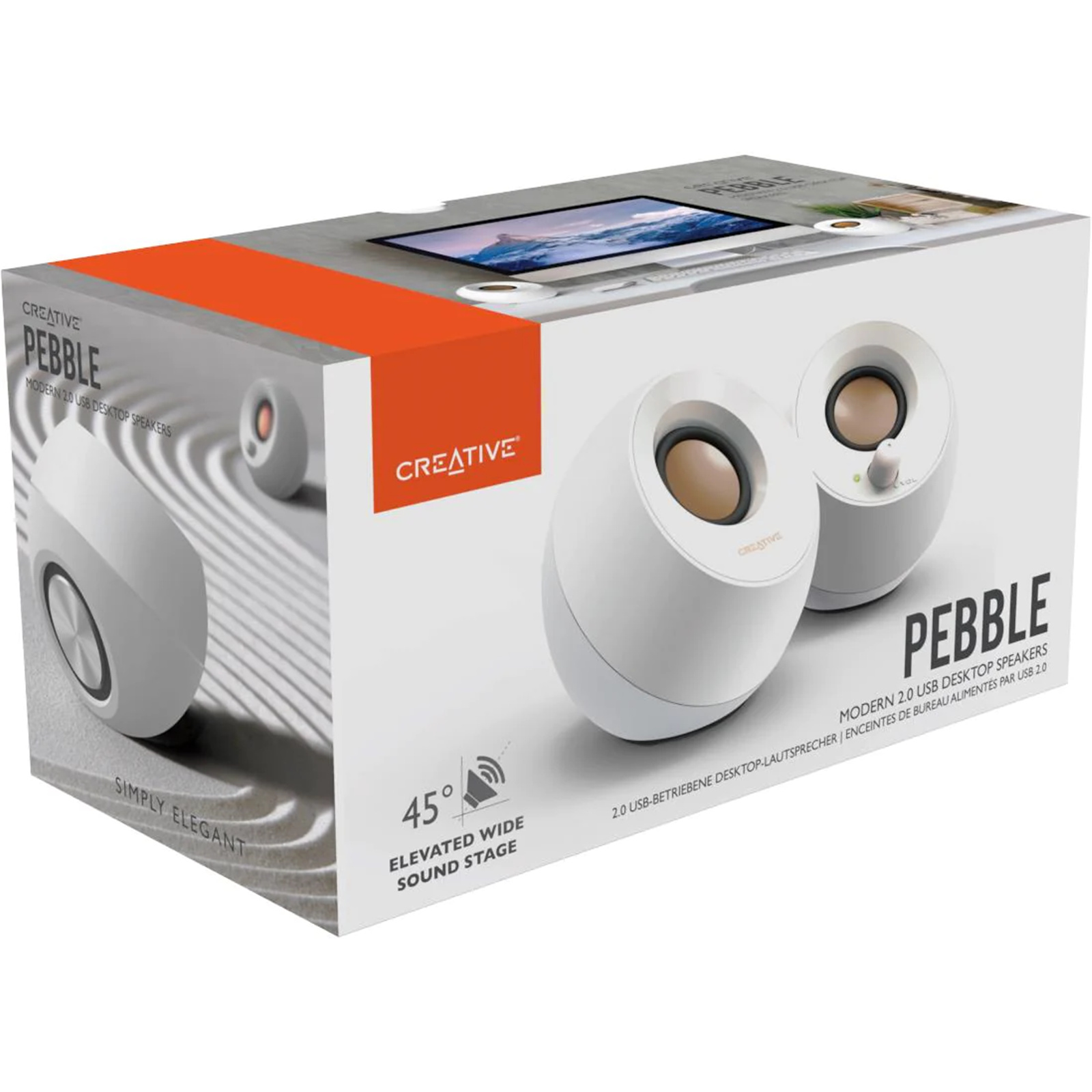 Measuring at only 4.4 inches wide each, the Creative Pebble can be conveniently placed next to your PC monitor without compromising on valuable desk space. What's more, the Pebble is conveniently powered by a single USB cable without the need for a wall outlet.