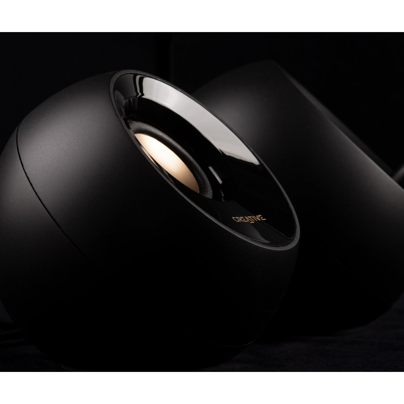 Inspired by the zen Japanese rock garden, the orb-shaped Creative Pebble is a sleek and elegant 2.0 speaker system that looks perfect in any home and office. It features a 45° elevated sound stage for enhanced audio projection and is powered by a single USB cable for hassle-free music entertainment.