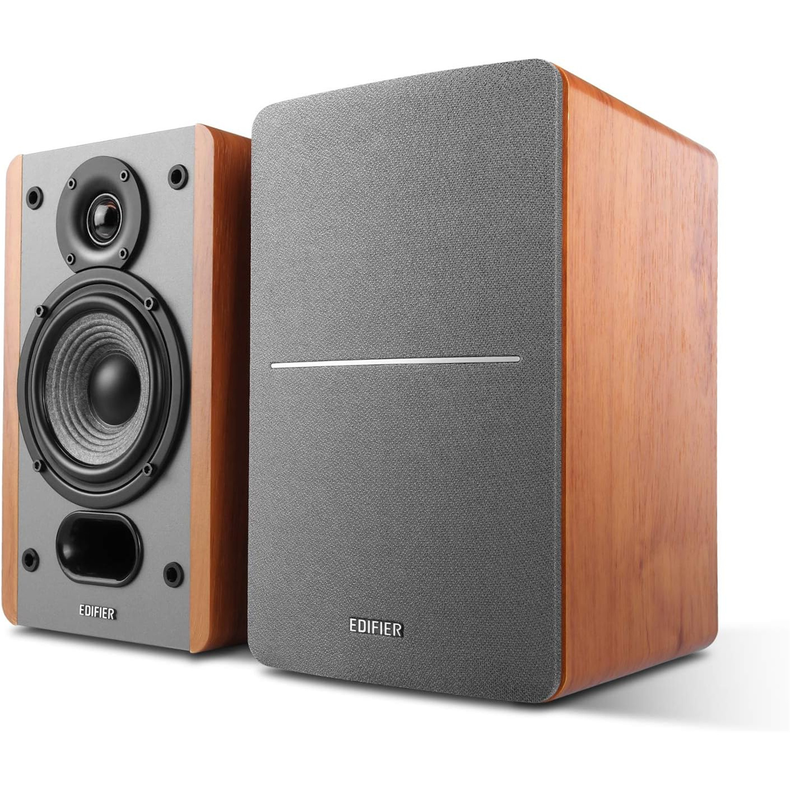 Edifier P12 4" Passive Bookshelf Speakers - Brown Wood (Pair) - 3/4" silk dome tweeters + 4" mid-woofers - 55Hz-20kHz - 6ohm - 5W-20W- High-quality crossovers - Built-in wall mount brackets - 6' speaker cables included - Amplifier required