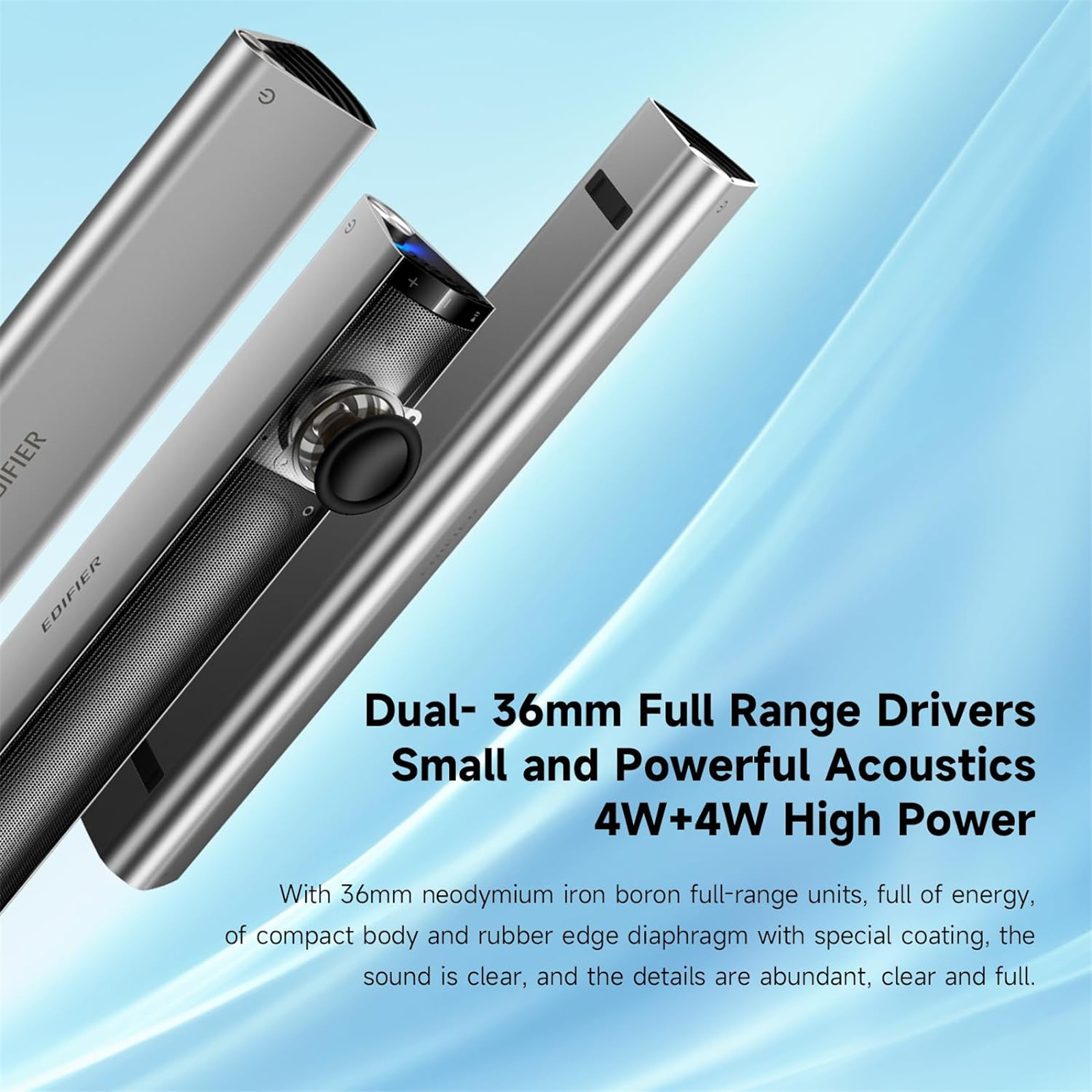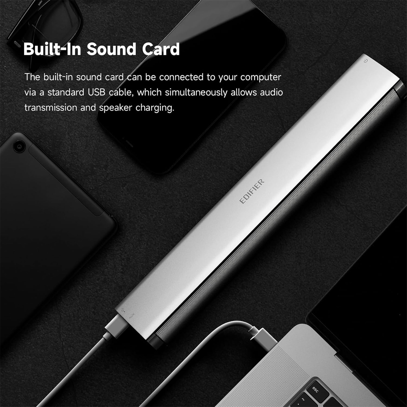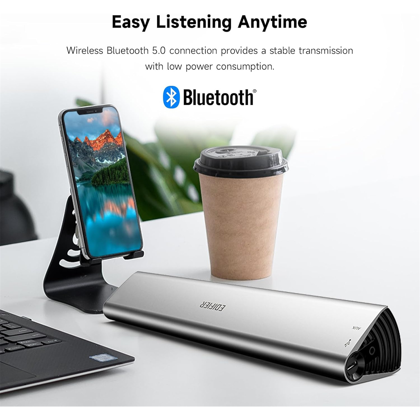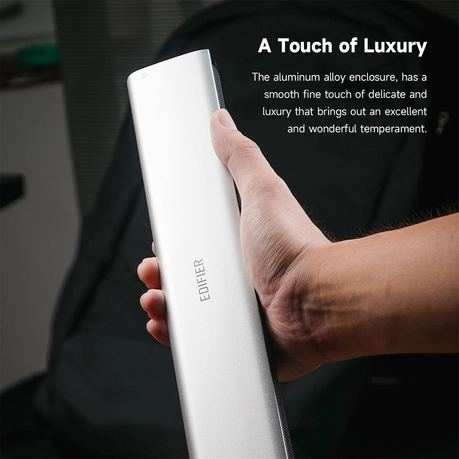 Edifier MF200 Portable / Desktop Bluetooth PC Soundbar Speaker - Silver Fits Under Monitors - USB-C & 3.5mm Aux Inputs - Premium Metal Design - Easy Touch Controls - Works with PC / Mac & More - Up to 10hrs Playback Per Charge