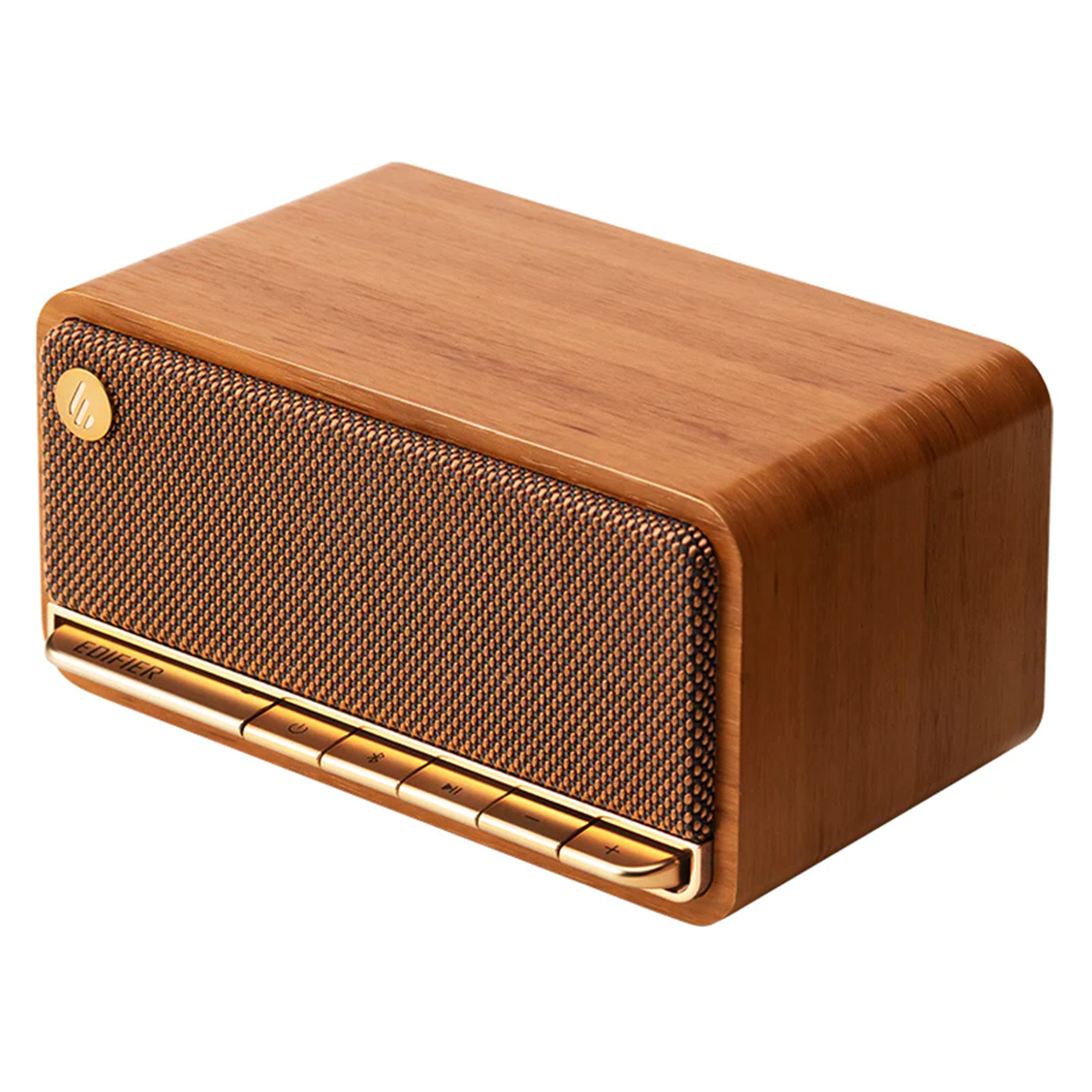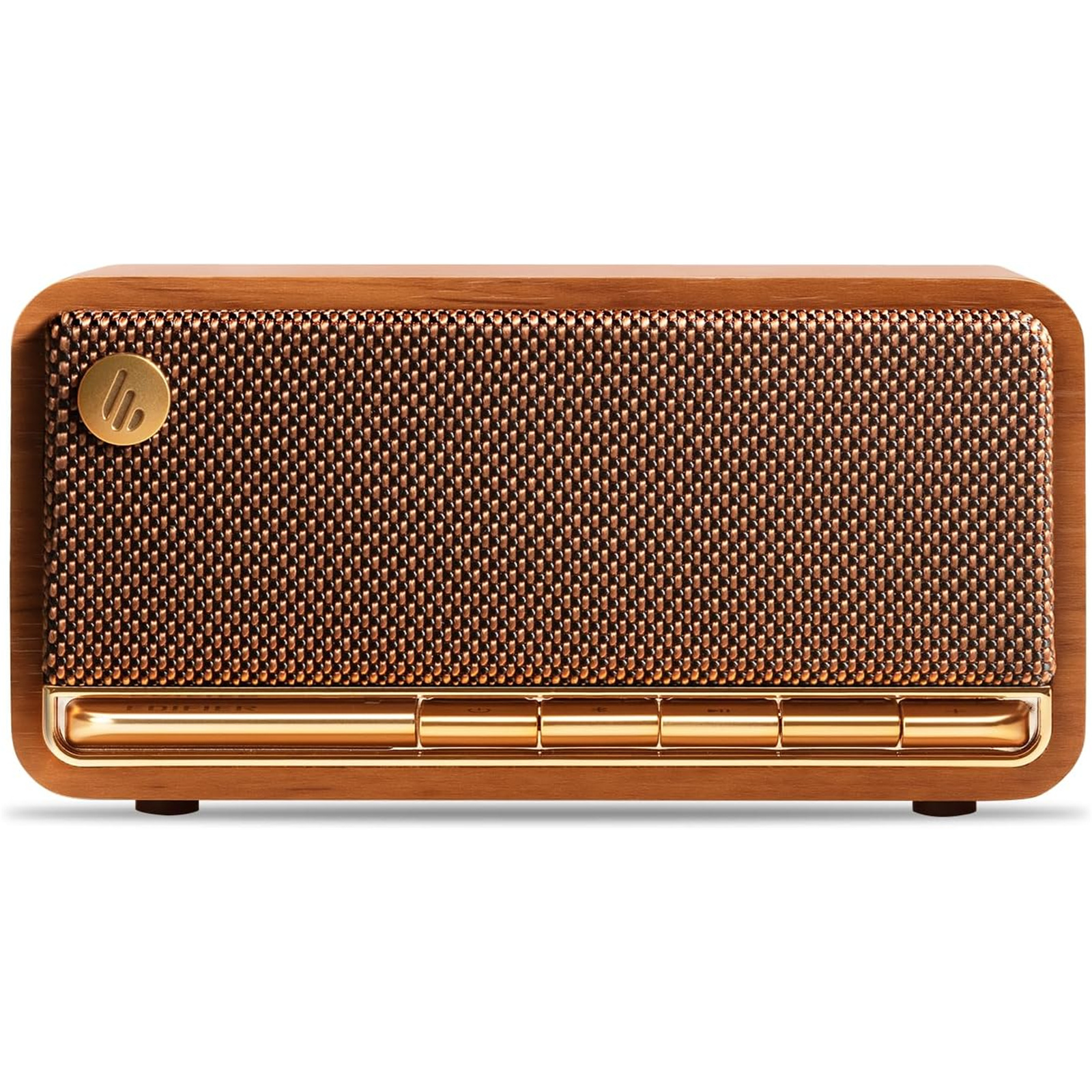 Edifier MP230 20W Portable Tabletop Bluetooth Stereo Speaker - Brown Premium Wooden Finish - Bluetooth + 3.5mm + SD Card + USB-C Inputs - Up to 10 Hours Playback