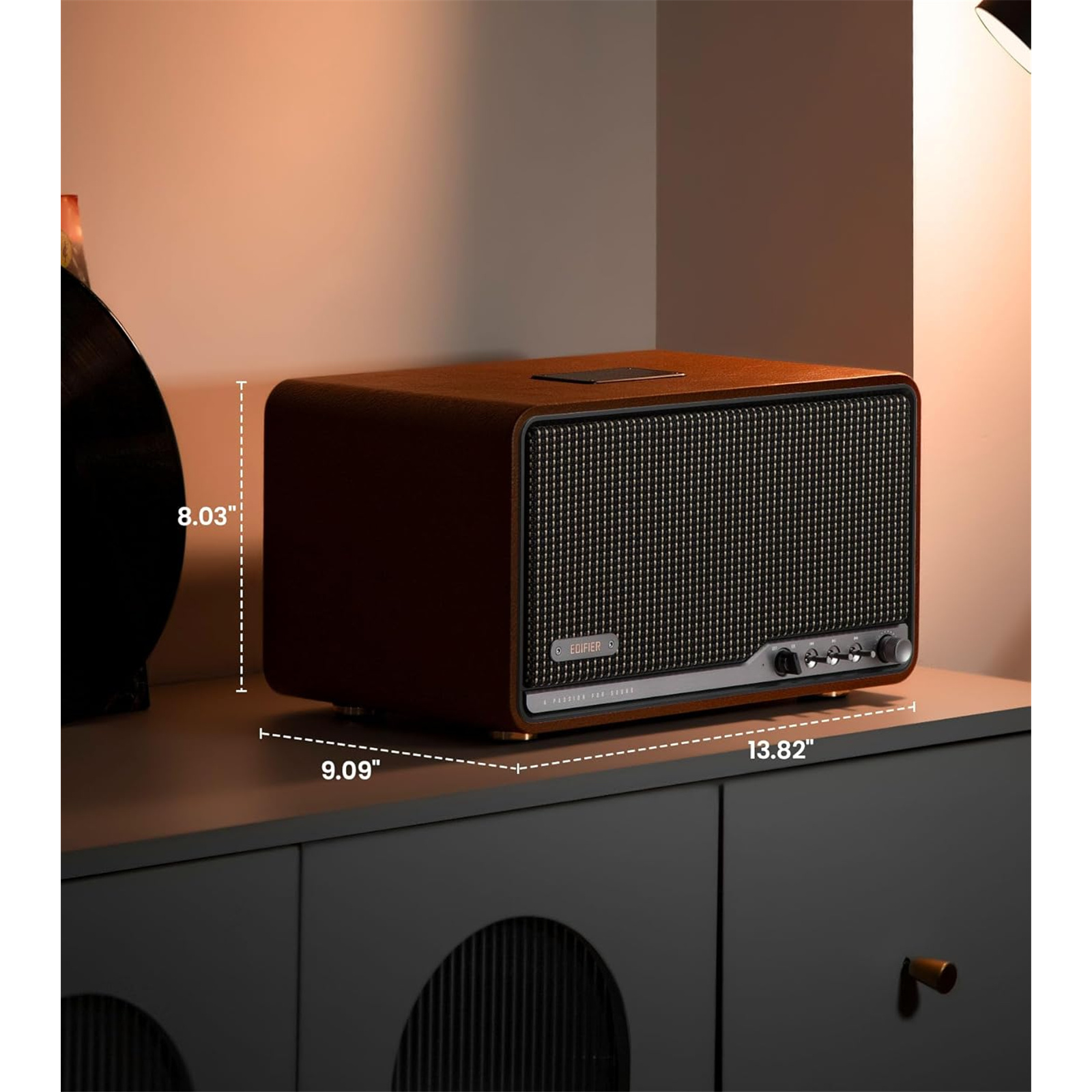Edifier S300 80W Premium Wireless Hi-Fi Tabletop Speaker with AirPlay 2 - Brown Hi-Res Audio via Dual-Band WiFi + Bluetooth 5.4 with LDAC + USB-C + AUX inputs - Apple AirPlay 2 + Multiroom - 15W tweeters + 50W 5.5" mid-bass driver - Retro d