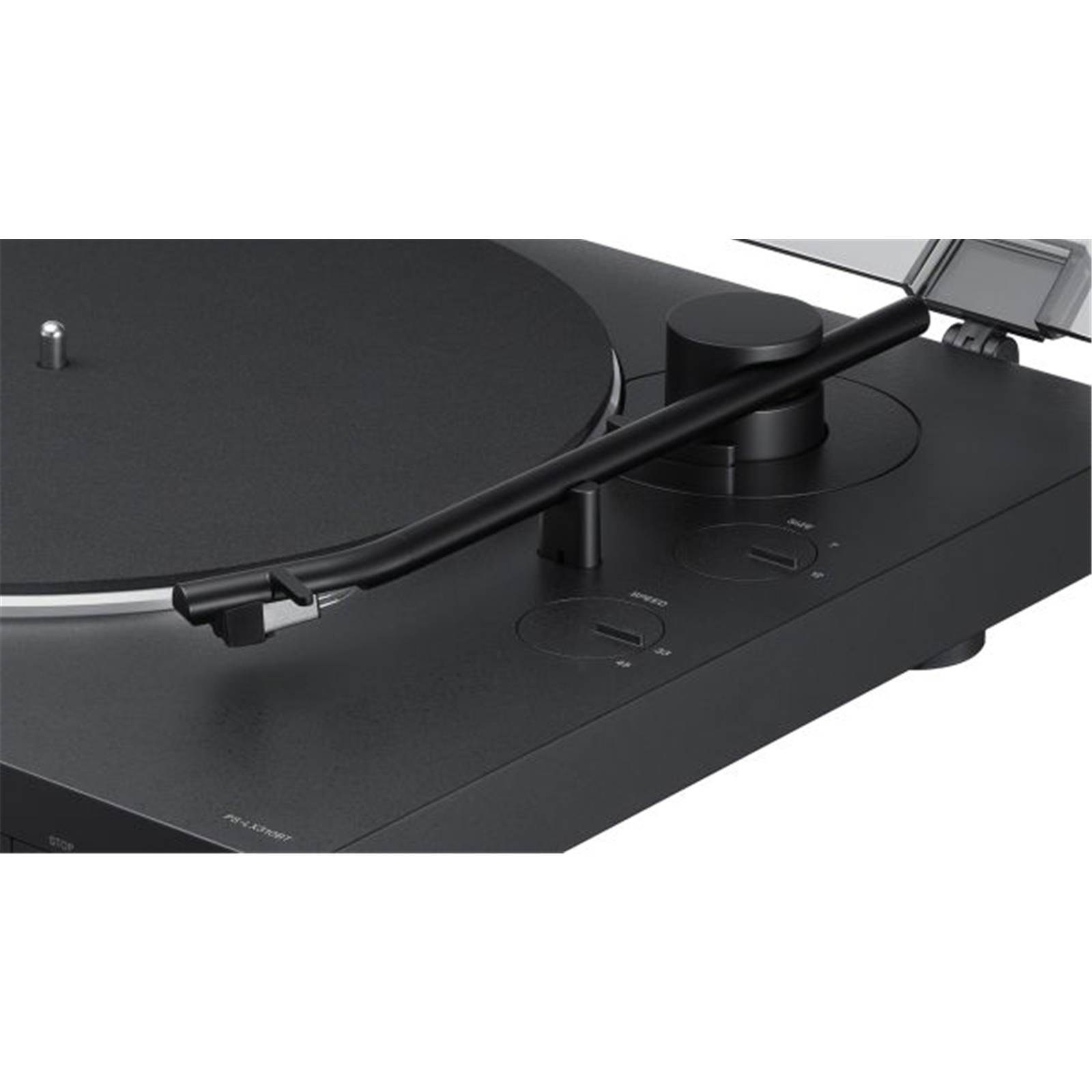 Thanks to the "One-step fully automatic playback" function, the turntable will automatically lower the tone arm, find the groove and get the music flowing from the paired BLUETOOTH® device. And when the record ends, just sit back as the tone arm automatically returns to its resting position.