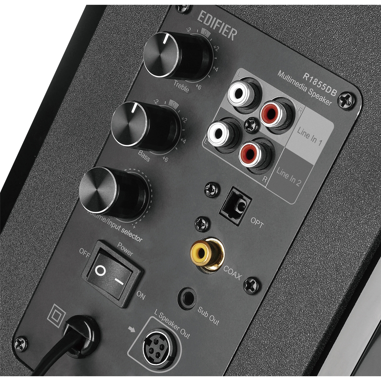 Every aspect of Edifier's R1855DB bookshelf speakers are designed with purpose. The medium-density fibreboard [MDF] enclosure reduces distortion and minimises acoustic resonance. The base of the speaker is angled at a 10-degree incline for dynamic precision and delivery. The design of the angle directs sound from the woofers right to your ears producing 70 watts of balanced quality tunes. Edifier's R1855DB active bookshelf speakers are a stand out in both categories of style and performance. Its 4-inch midrange/woofer speaker drivers create rich lows. Meanwhile, the treble units produce clear highs. A perfectly tuned bookshelf speaker to suit your needs.