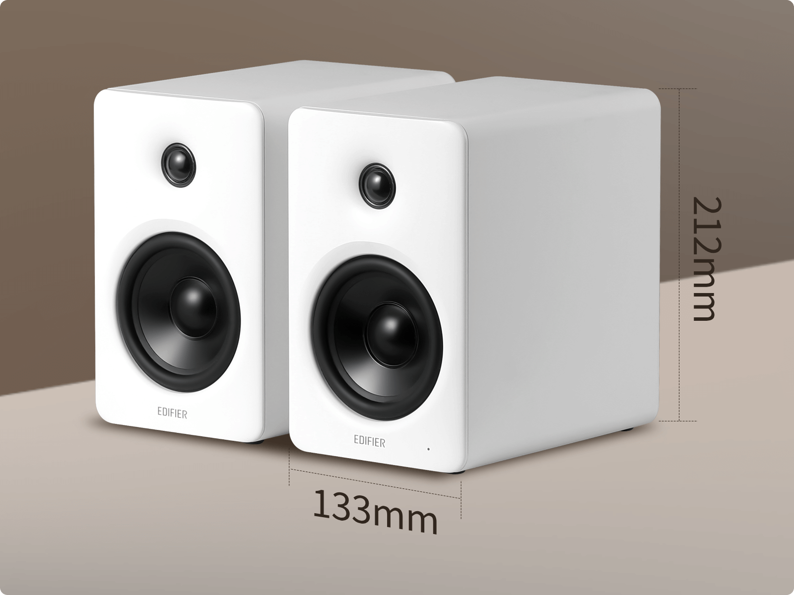 Measuring 133 mm (W) × 212 mm (H) × 225 mm (D) per speaker, it fits seamlessly into any space.