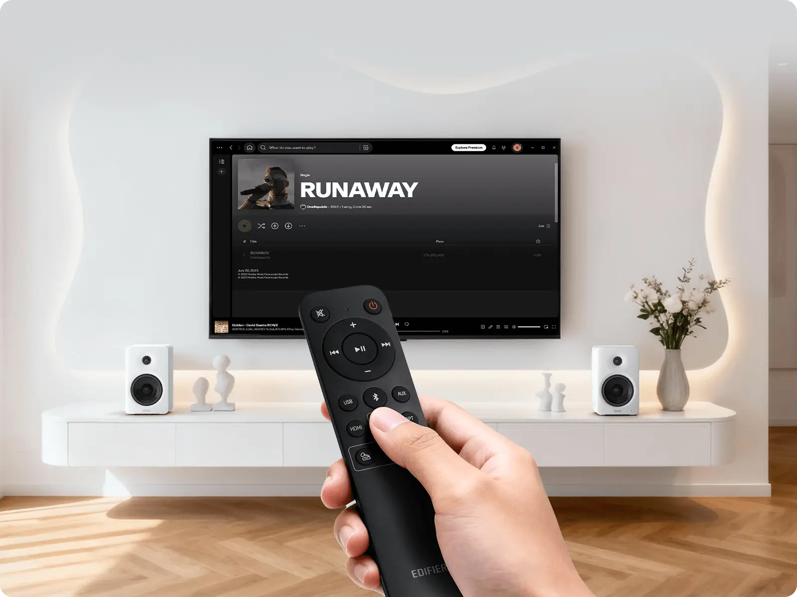 - 4" Aluminium Diaphragm Woofers + 1" Silk Dome Tweeters - 50Hz-40kHz - Subwoofer Output - Hi-Res LDAC Bluetooth 6.0 + HDMI eARC + USB-C + Optical + 3.5mm Aux Inputs - Remote included