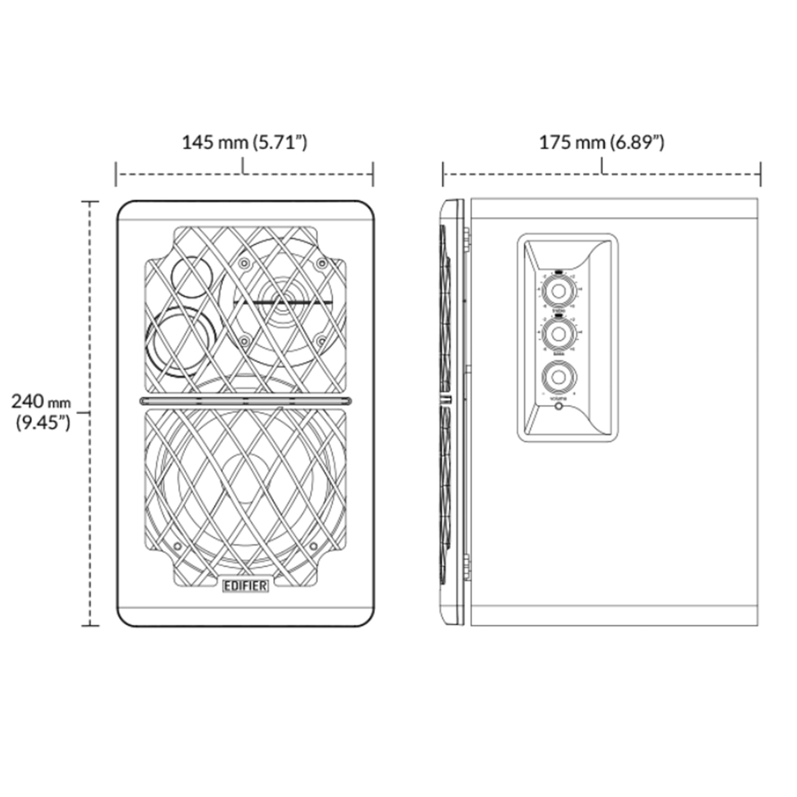 - 4" Mid-range and bass drivers + 0.5" treble drivers