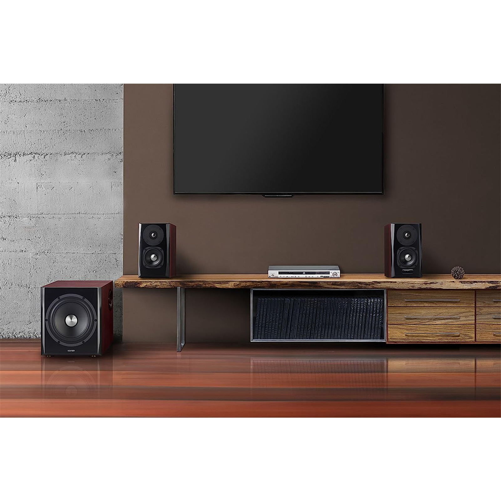 Edifier S350DB 150W Bookshelf Speaker & 8" Subwoofer 2.1 System with Bluetooth - Brown Titanium Dome Tweeters - Booming Subwoofer - 40Hz-20kHz - Optical + Coax + PC / AUX + Bluetooth AptX - Wireless Remote Control