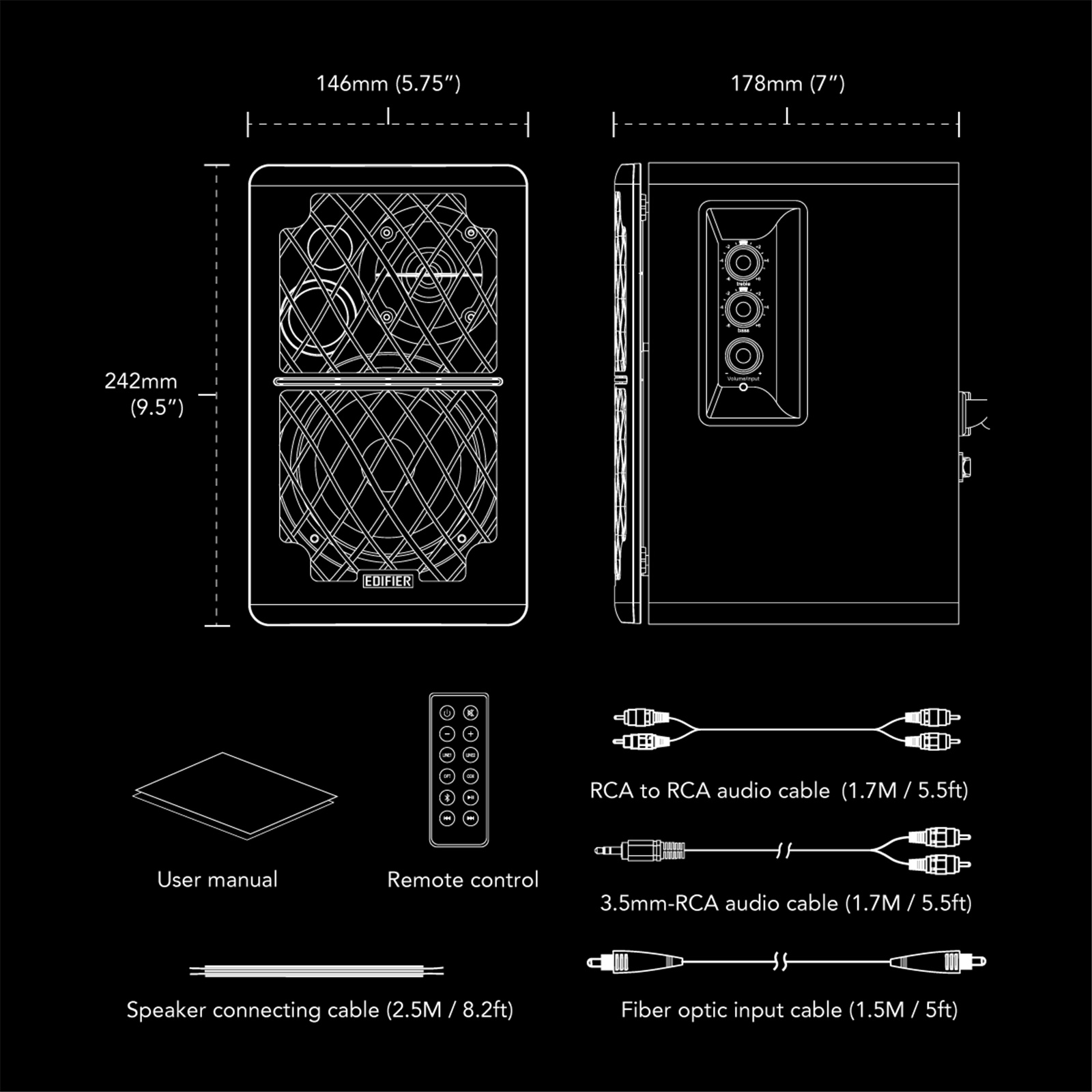 Easily switch between inputs, adjust volume and power with the use of the remote. The features of our black remote add that extra layer of modern delight. Comfort and convenience is what the R1280DB seeks to provide with inclusion of the remote. Control at your fingertips yet again, with the R1280DB Bluetooth powered bookshelf speakers.