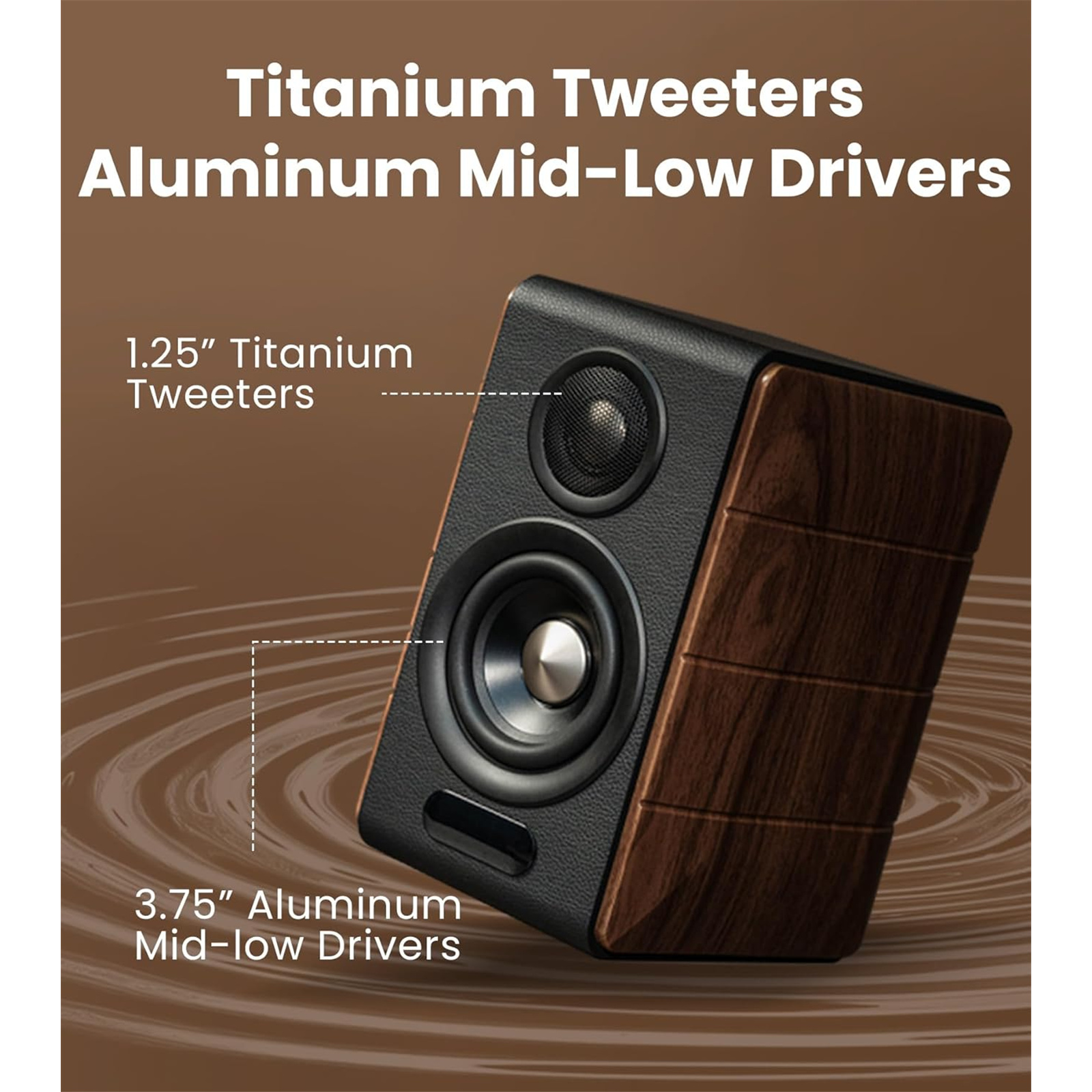 - 1" titanium diaphragm dome tweeters and 3.75" long-throw aluminum diaphragm mid-low drivers