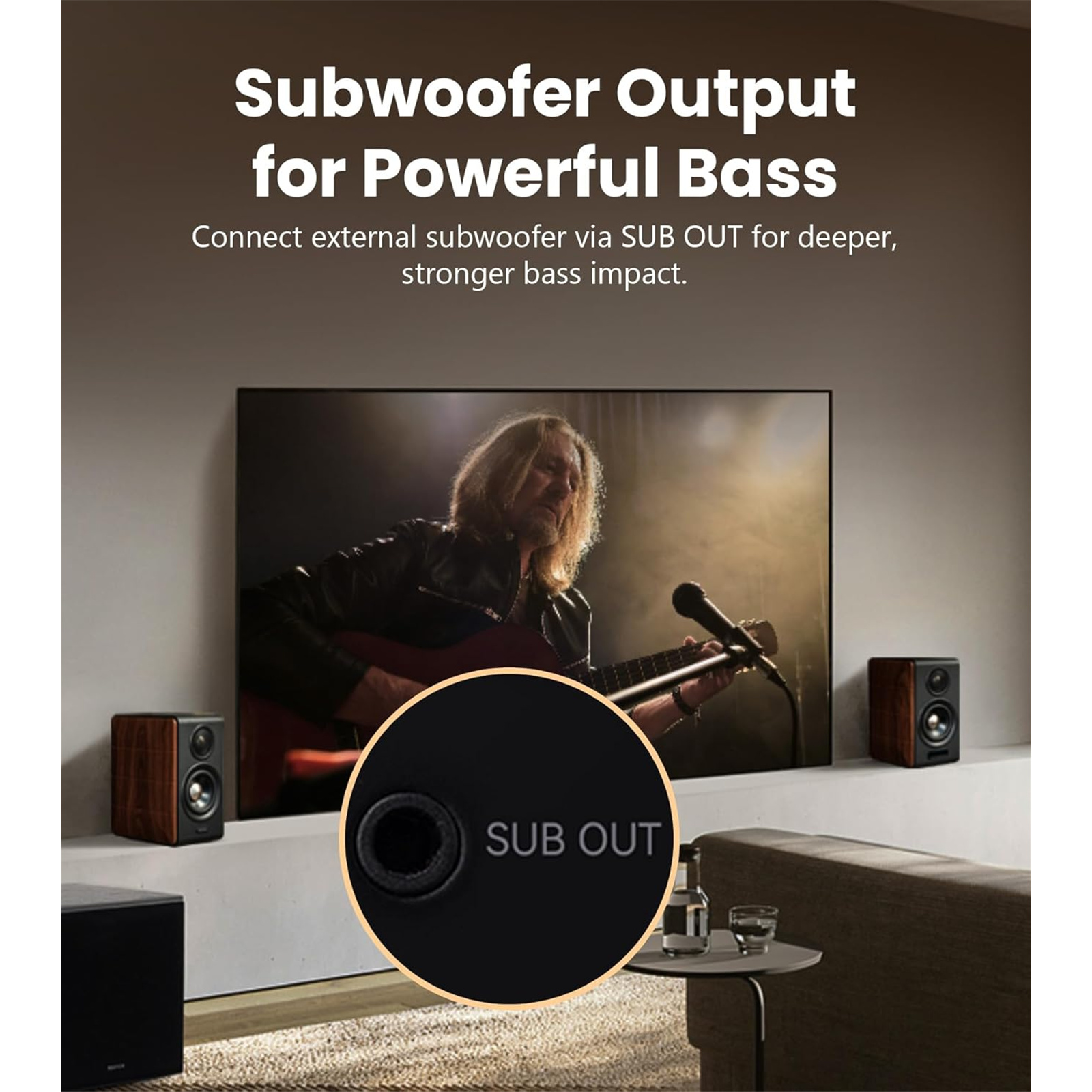 The SUB OUT port allows for the connection of an external subwoofer, delivering deeper and more powerful bass.