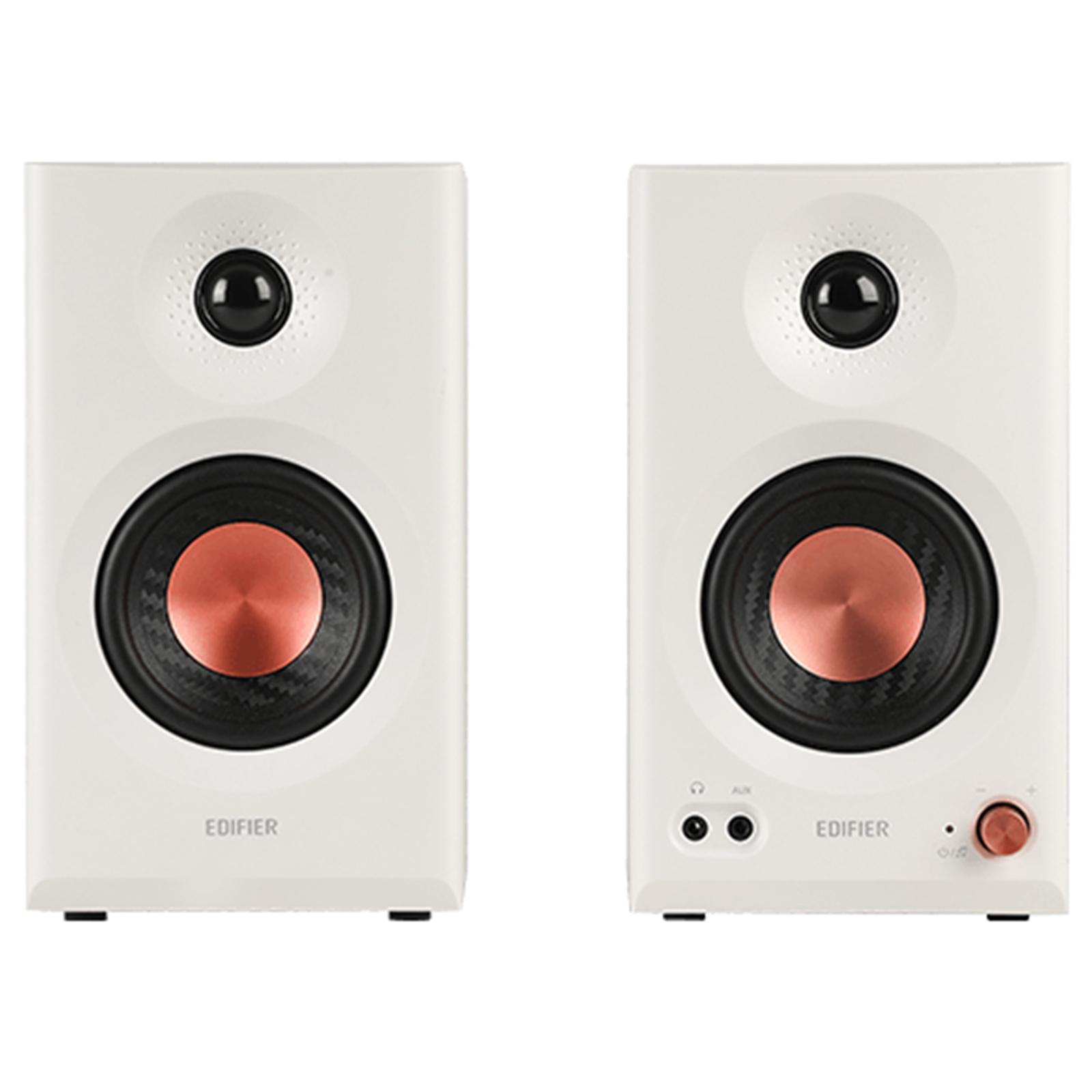 The fine-tuned 3.5" mid-low drivers and 1" silk dome tweeters can deliver 18W*2 (RMS) total output power and 92.5dB SPL (peak @ 1 meter). They are suitable for near-field listening and also powerful enough to fill a medium room.