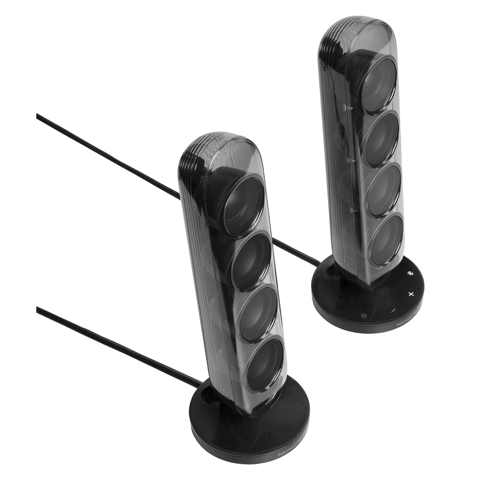 SoundSticks 5's three-way speaker design provides a detailed, clear stereo soundstage. Its down-firing subwoofer delivers punchy, accurate bass. Dual silk dome tweeters and mid-range drivers provide flawless vocal and instrument reproduction.