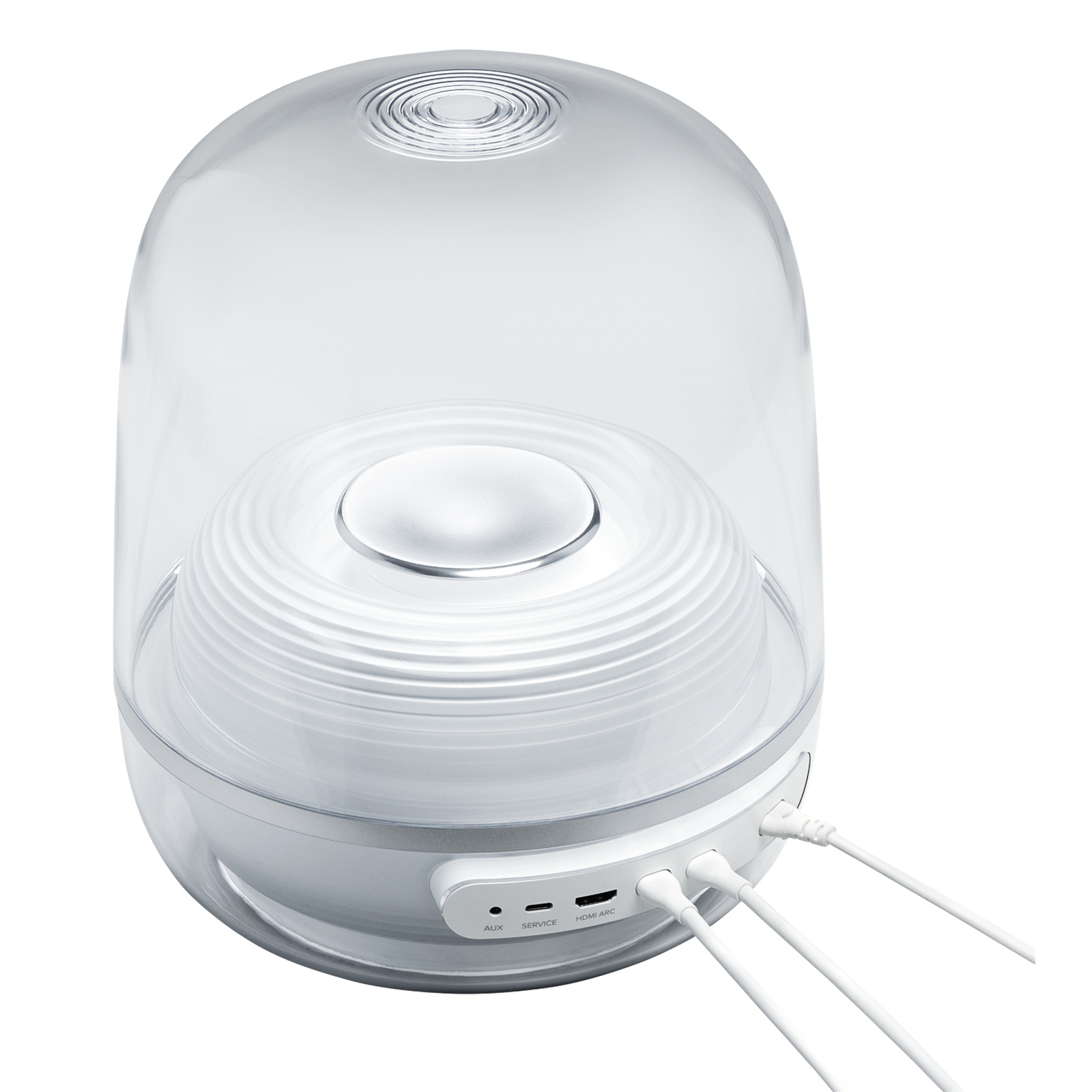 Imagine a relaxing dinner with friends, the music flowing as easily and seamlessly as the conversation. Or a cozy evening for two, with your most romantic playlist setting the mood while engaging lighting casts a soothing ambiance. With its iconic transparent dome and sleek, elegant curves, Harman Kardon SoundSticks 5 adds timeless style to any room. The satellite speakers and subwoofer create a captivating light show with rich colors and dynamic motion, transforming your listening experience with rich colors and fluid motion that match well with any mood.