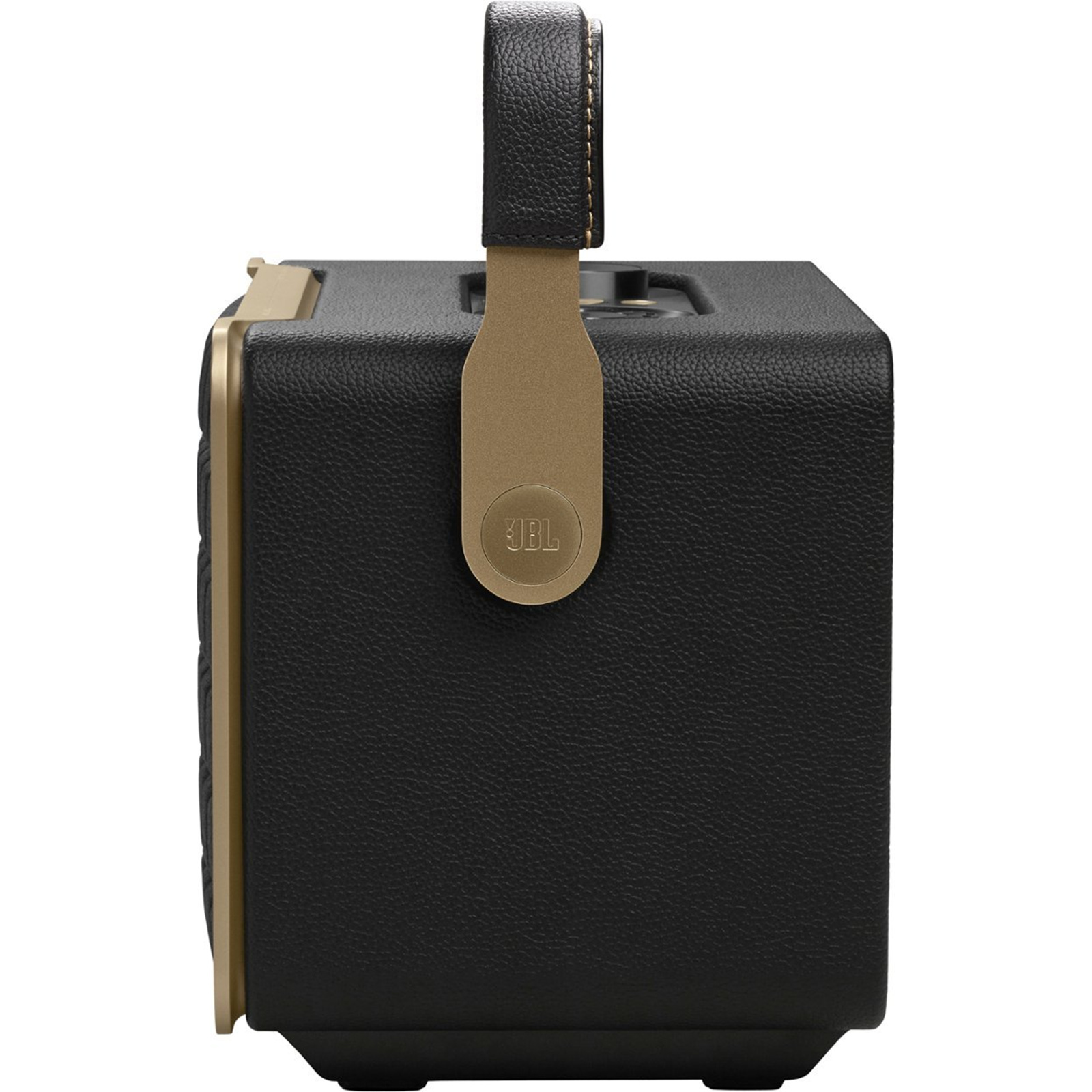 The JBL Authentics 300 delivers iconic style inspired by classic JBL retro designs, in a portable home speaker that looks great in any decor. It will easily fill any space, big or small, with superior JBL sound. And the speaker's convenient cast-aluminum handle, custom leather-like enclosure, and reimagined Quadrex grille really show the attention we paid to each visual detail, right down to the special JBL signature pattern on the down-firing passive radiator.