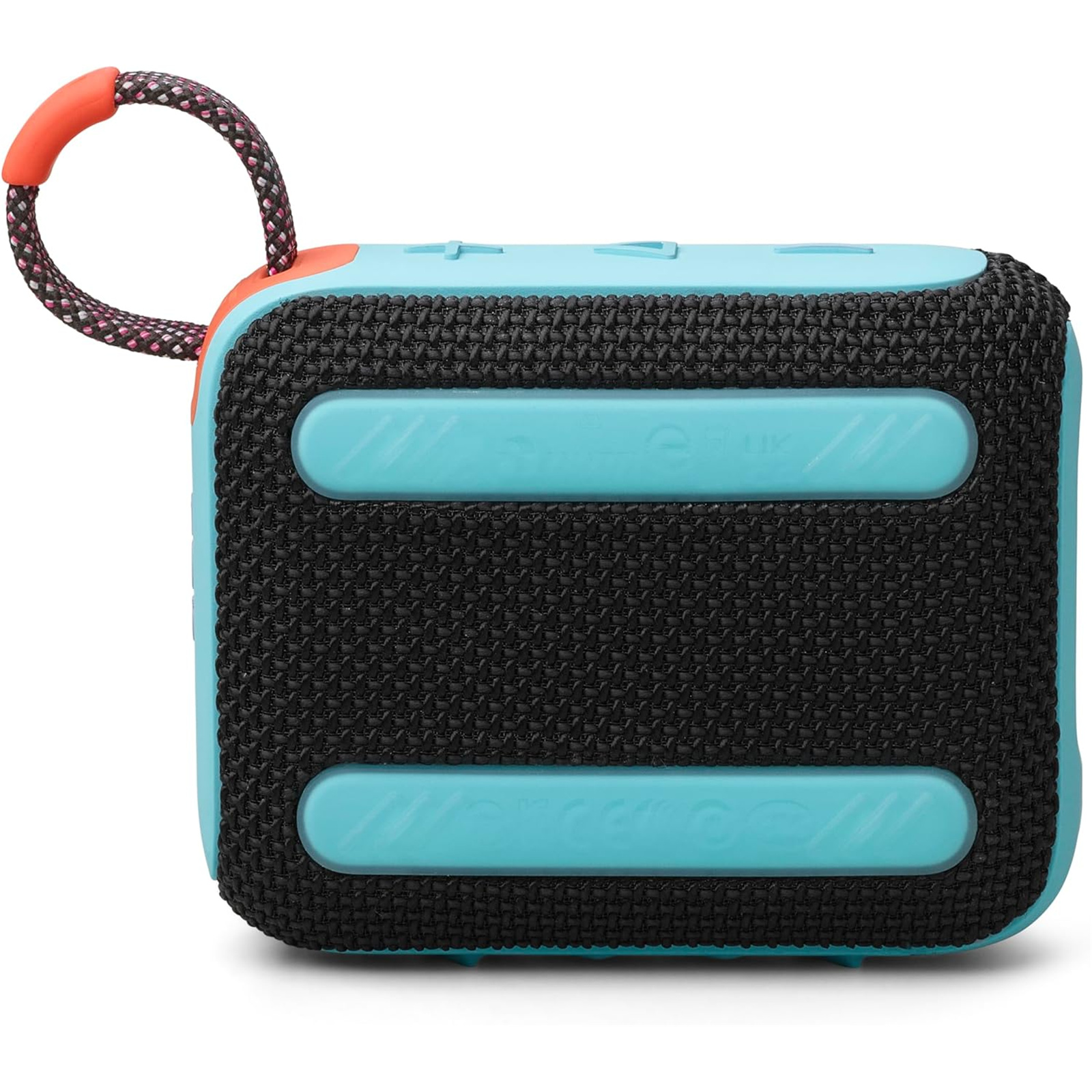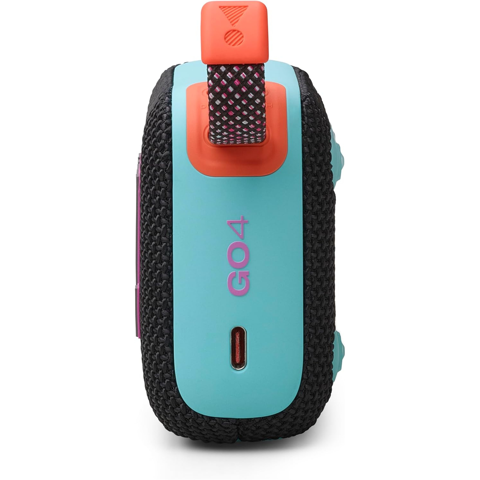 Take big JBL Pro sound wherever you go. The bold, colorful JBL Go 4 ultra-portable Bluetooth speaker fits in the palm of your hand, delivering clear, loud JBL Pro Sound with rich, punchy bass. Its newly redesigned integrated loop makes it easy to bring anywhere, and the variety of colorways means you can choose one that fits your vibe. Plus it's waterproof and dustproof, so it loves to go outside. And up to 7 hours of playtime mean it will keep the good times rolling throughout a fun day trip or an evening chilling under the stars. Pair two Go 4s for stereo sound, or wirelessly connect multiple JBL Auracast-enabled speakers for even bigger sound. Crank it up and let your music take you anywhere.