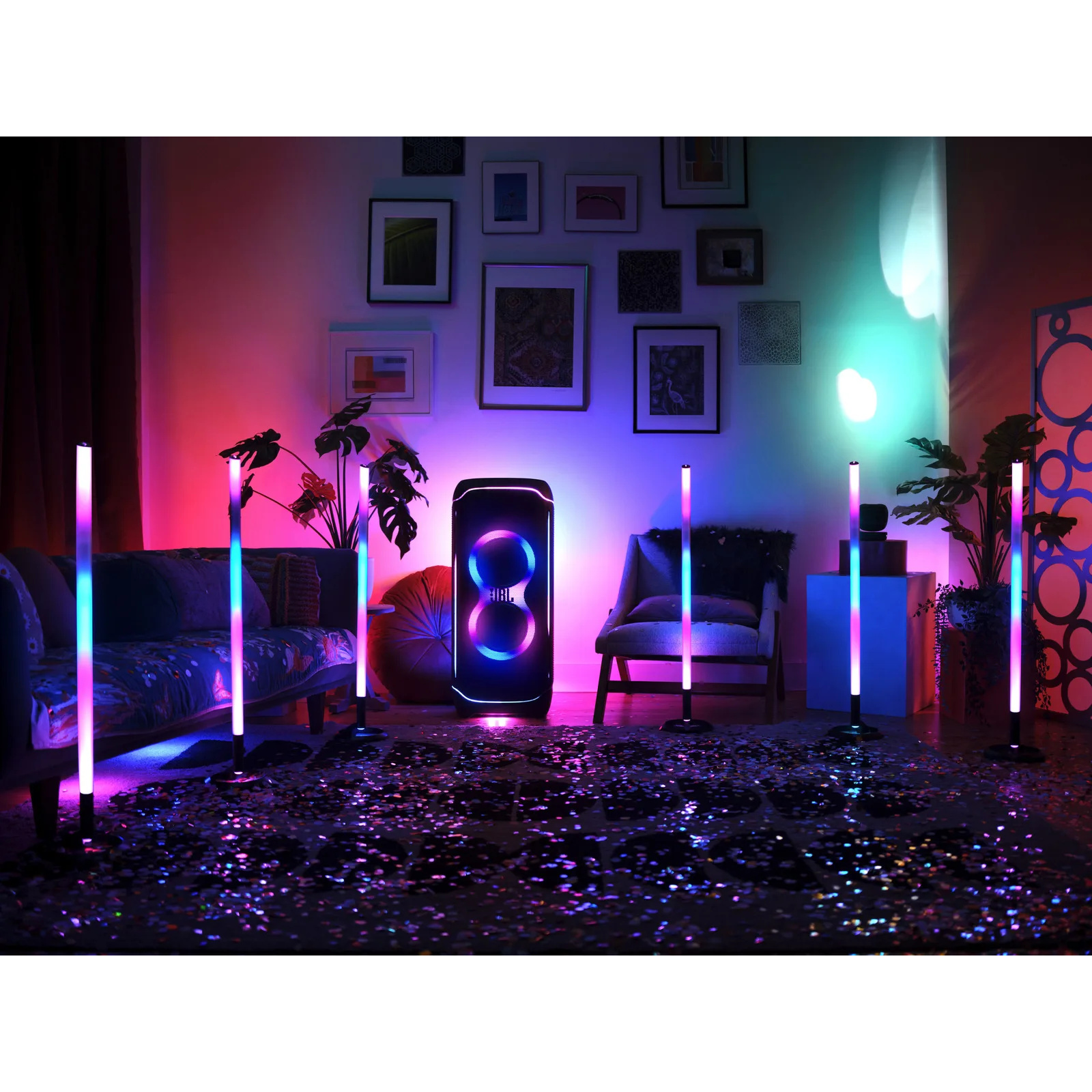 For the biggest, most immersive visual experience, get more JBL PartyLight Sticks to sync with your JBL PartyBox
