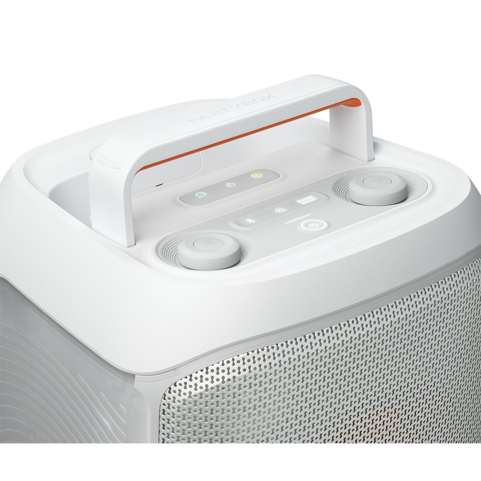 JBL PartyBox Club 120 160W Wireless Portable Party Speaker - White Powerful JBL Pro Sound - Bluetooth + Dual Mic & Guitar Inputs - Futuristic RGB Lightshow - Splashproof - Auracast - Foldable Handle & Replaceable Battery - Up to 12 Hours of