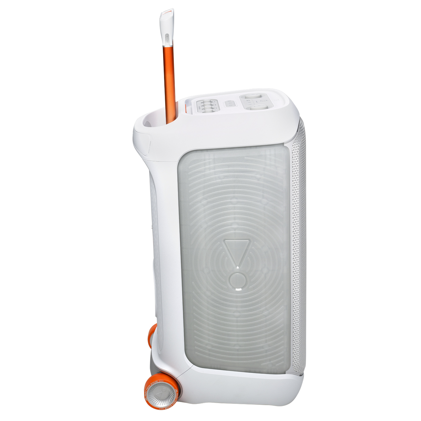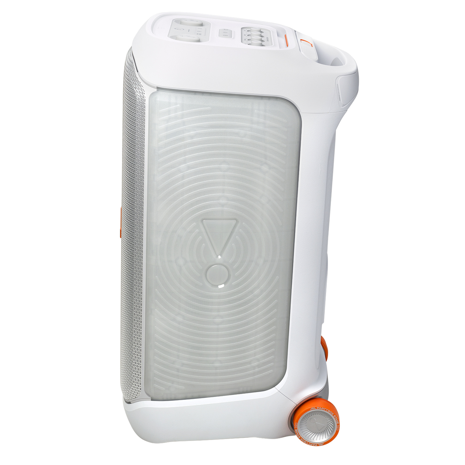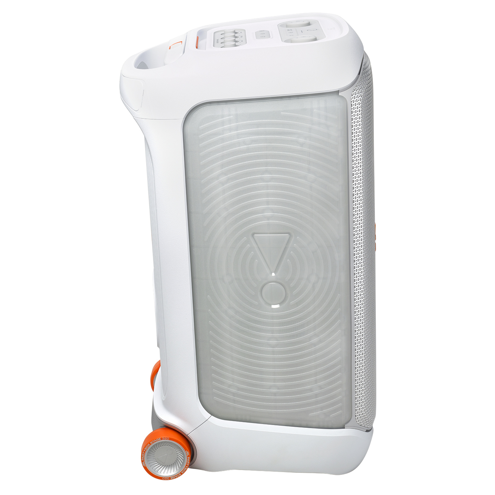 JBL PartyBox Stage 320 240W Wireless Portable Party Speaker - White Powerful JBL Pro Sound - Wheels & Handle - Rugged & IPX4 Splash Resistant - Dual Mic / Guitar Inputs - RGB Lightshow - Auracast - Up to 18 Hours Battery Life