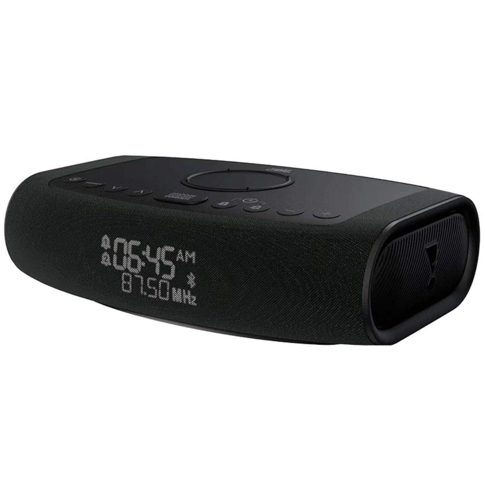 The JBL Rise is a modern table radio designed to enhance your space with both style and functionality. Featuring a sleek, compact form factor, it doubles as a premium Bluetooth speaker and a convenient wireless charging station. Whether you're waking up to your favorite FM station or streaming music from your smartphone, the JBL Rise delivers rich, dynamic sound with the reliability of JBL engineering. Its intuitive controls, adjustable LED display, and smart connectivity features make it the perfect companion for your bedside or workspace.