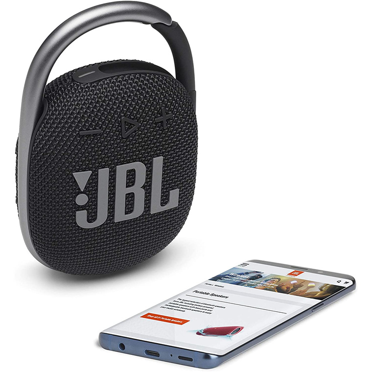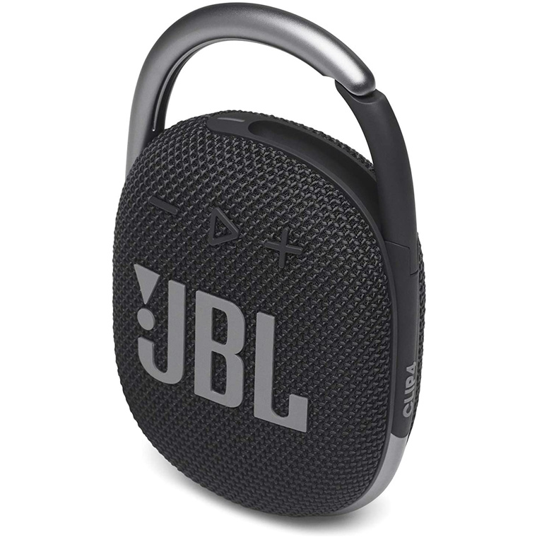 Cool, portable, and waterproof. The vibrant fresh looking JBL Clip 4 delivers surprisingly rich JBL Original Pro Sound in a compact package. The unique oval shape fits easy in your hand. Fully wrapped in colourful fabrics with expressive details inspired by current street fashion, it's easy to match your style. The fully integrated carabiner hooks instantly to bags, belts, or buckles, to bring your favorite tunes anywhere. Waterproof, dustproof, and up to 10 hours of playtime, it's rugged enough to tag along wherever you explore.