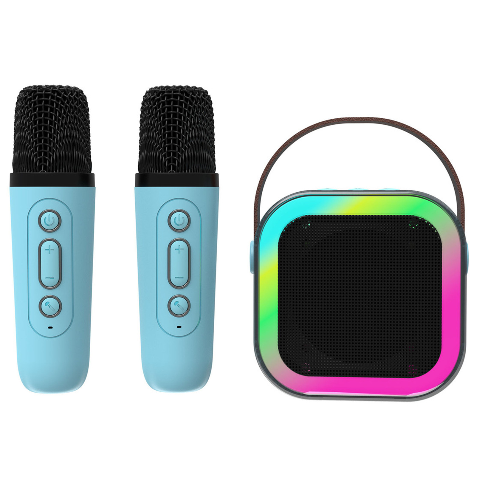 Laser Mini Karaoke Speaker With 2 Wireless Microphones - Blue