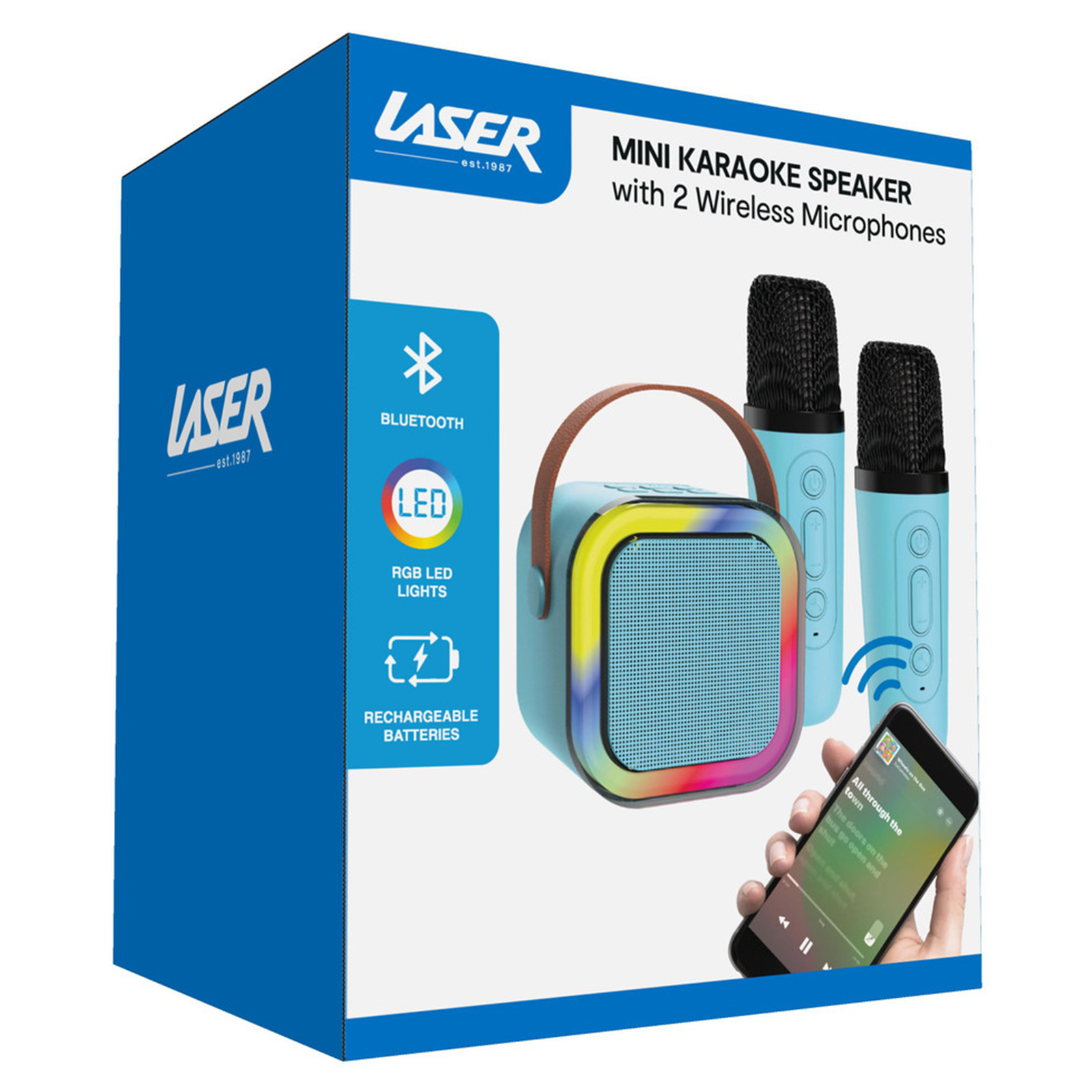 Laser SP-KA10BL-549 Mini Karaoke Speaker With 2 Wireless Microphones - Blue