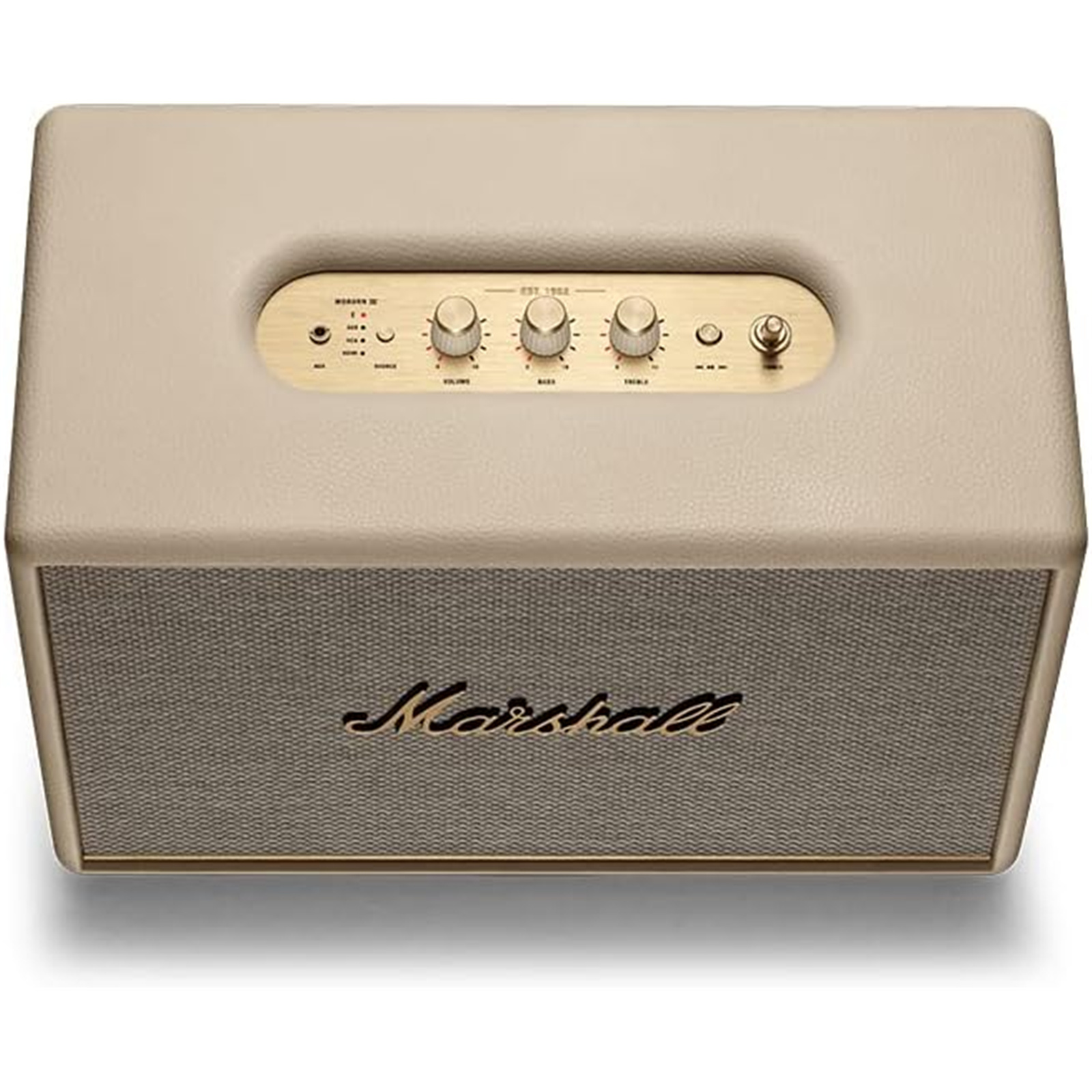 Marshall has taken its signature rock 'n' roll home speaker line-up and given it a stripped-back look that makes a loud statement. Its iconic design knocks all other speakers off the shelf. Signature details such as the Marshall script and brass control knobs adorn the speaker, echoing the legacy of rock 'n' roll. Choose the finish that fits you - original Black or vintage Cream.