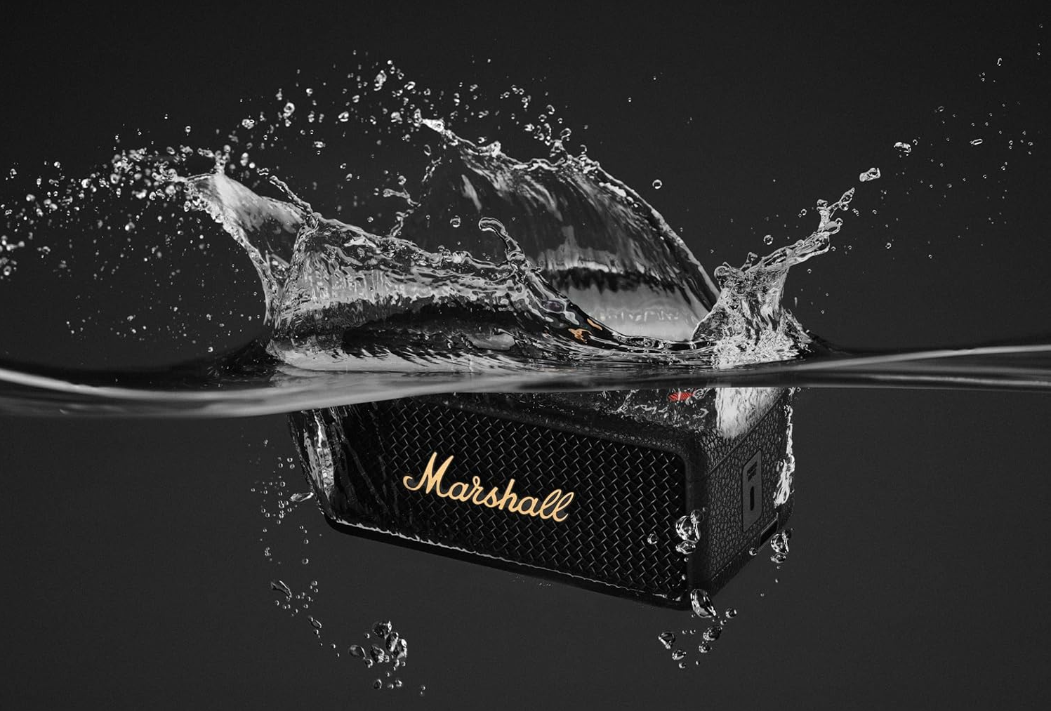 Built to withstand the elements, the Marshall Emberton III Speaker boasts a dustproof and waterproof design. It is also submersible up to 1m for 30 minutes, perfect for poolside fun, rainy hikes, or sandy beaches.
