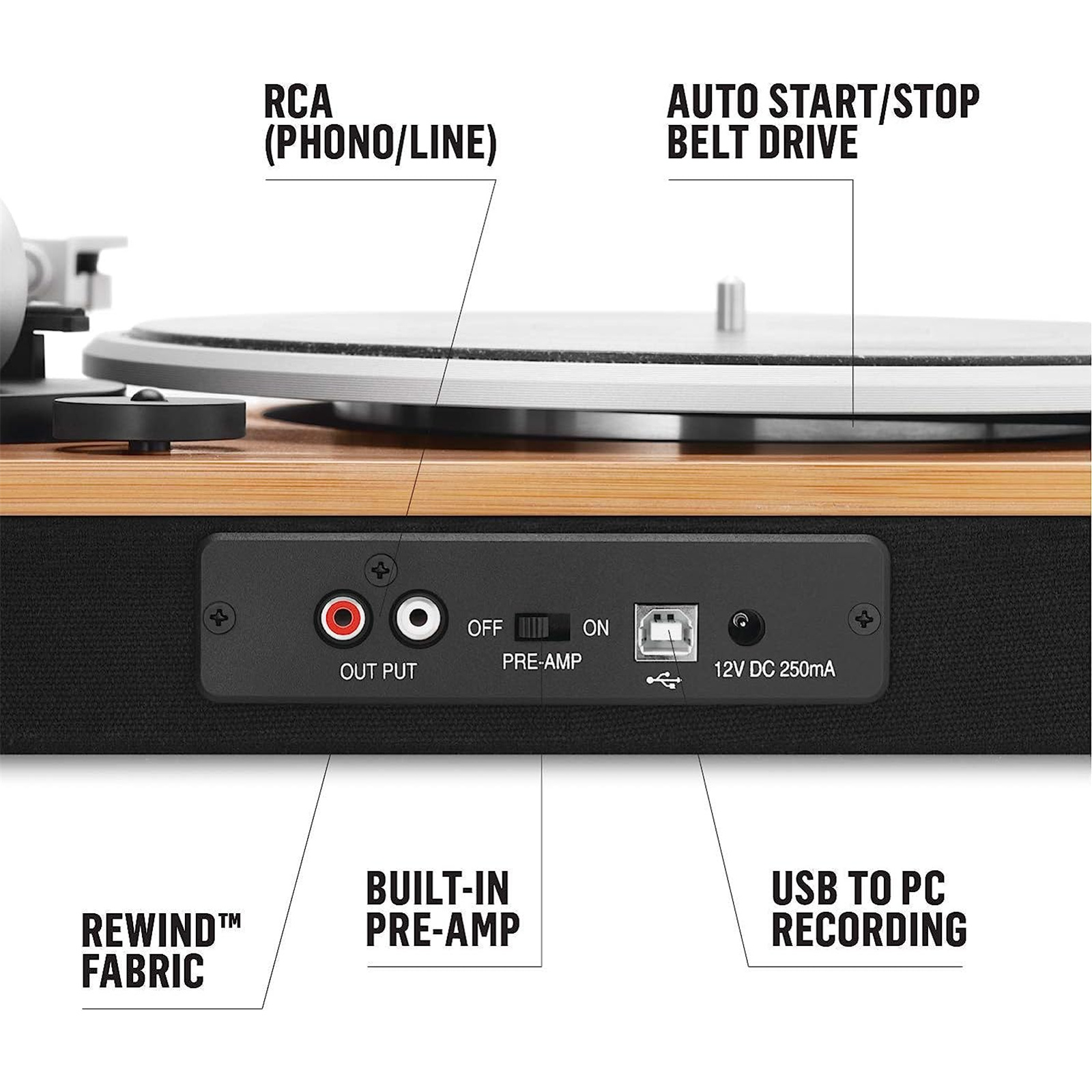 MARLEY Stir It Up BT Wireless Turntable Vinyl Record Player with Built-in Pre-Amp - Premium Bamboo Finish - Audio-Technica Cartridge - USB-B + Bluetooth + RCA + 3.5mm Connectivity