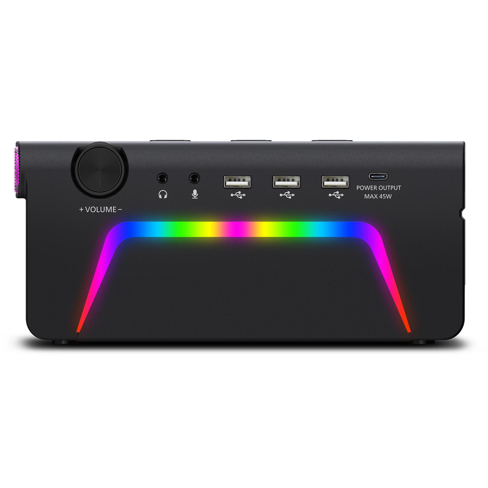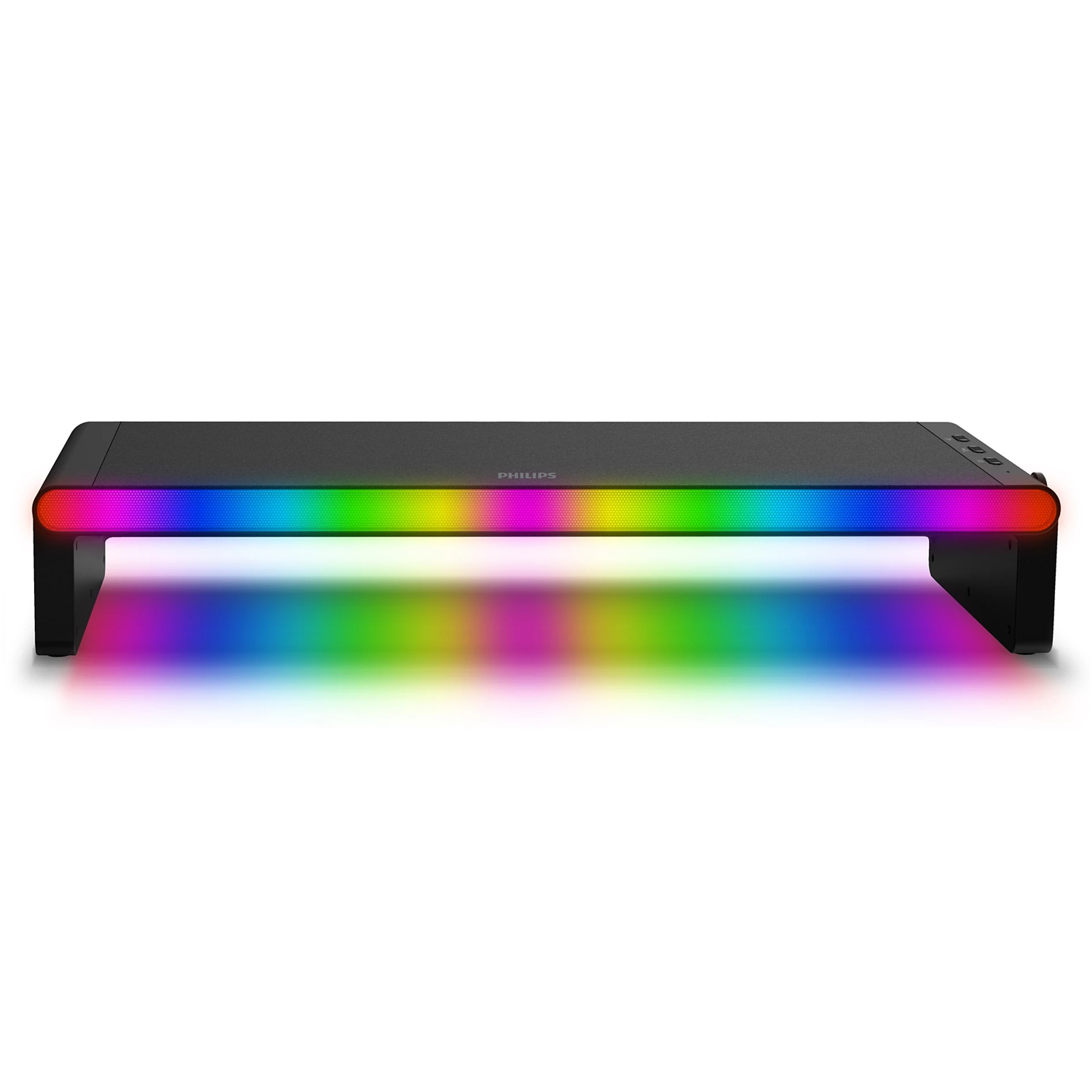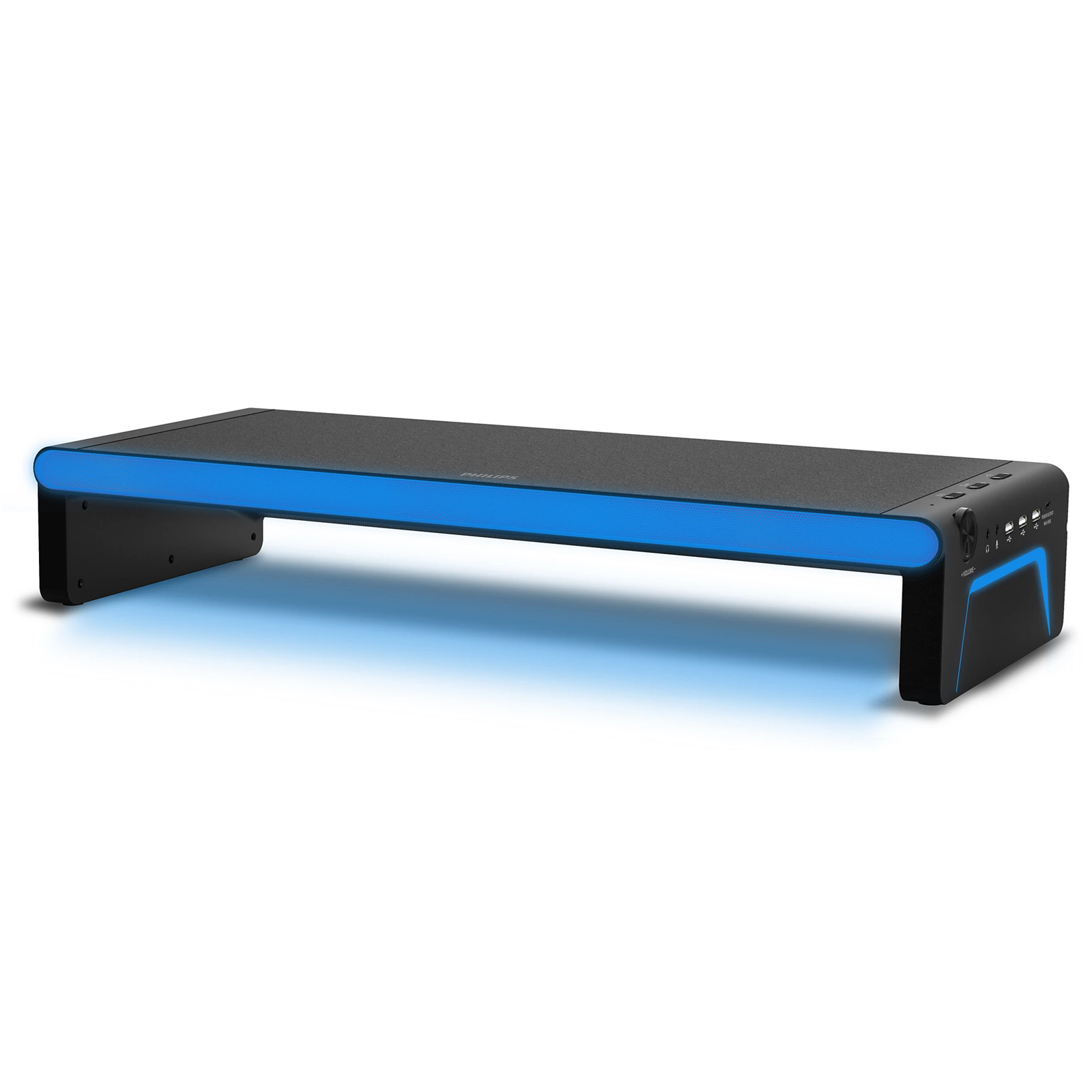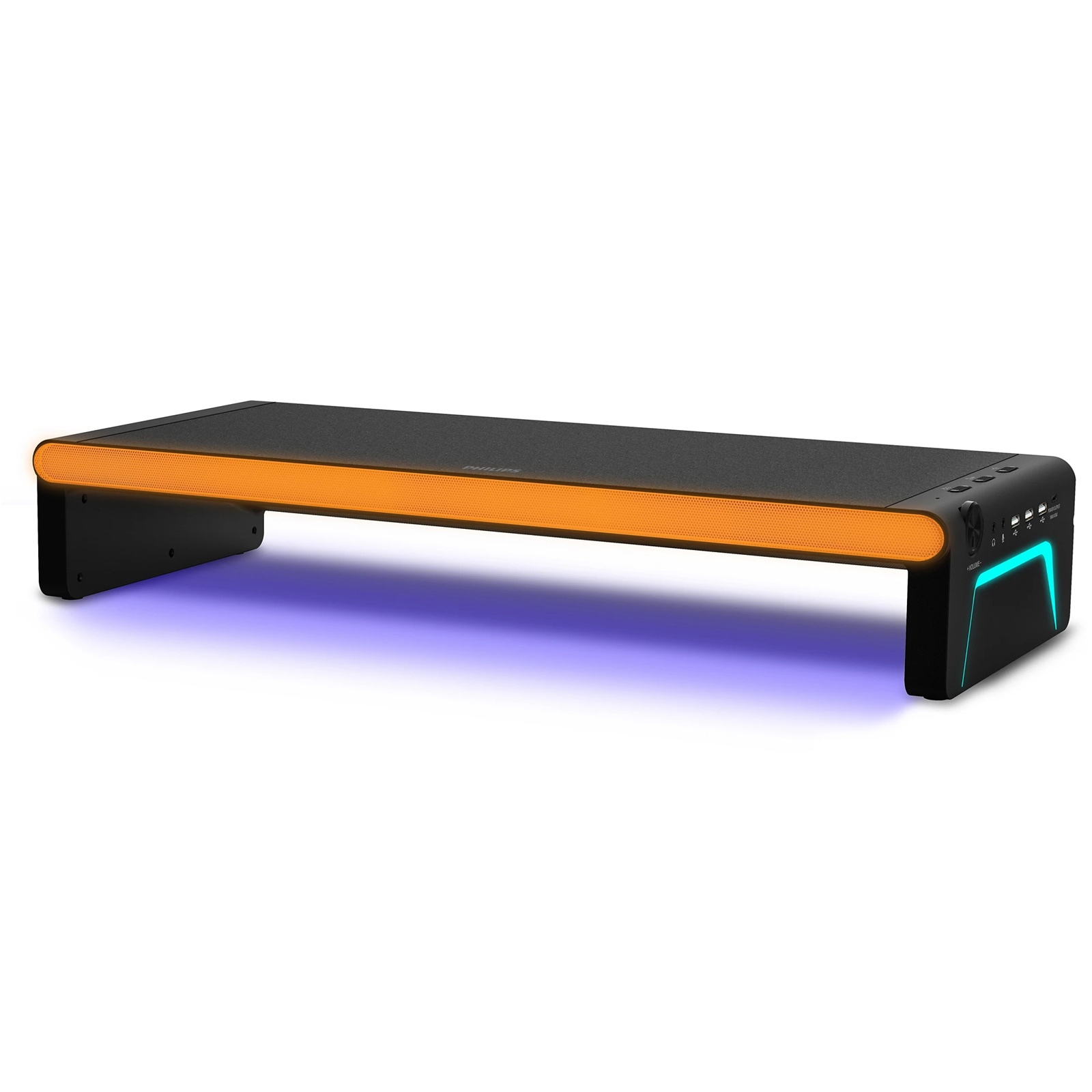 Short on space? This versatile all-in-one stand and docking station elevates your monitor, desktop PC, or laptop to the perfect height. The built-in speakers enhance the sound of games or work calls-and the lightshow brings the atmosphere.