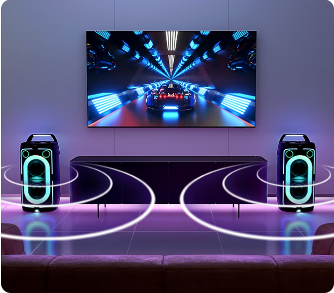 Immersive stereo sound that brings every scene to life with realistic audio. Simply place two identical speakers on either side of the screen and activate stereo mode to enjoy.*