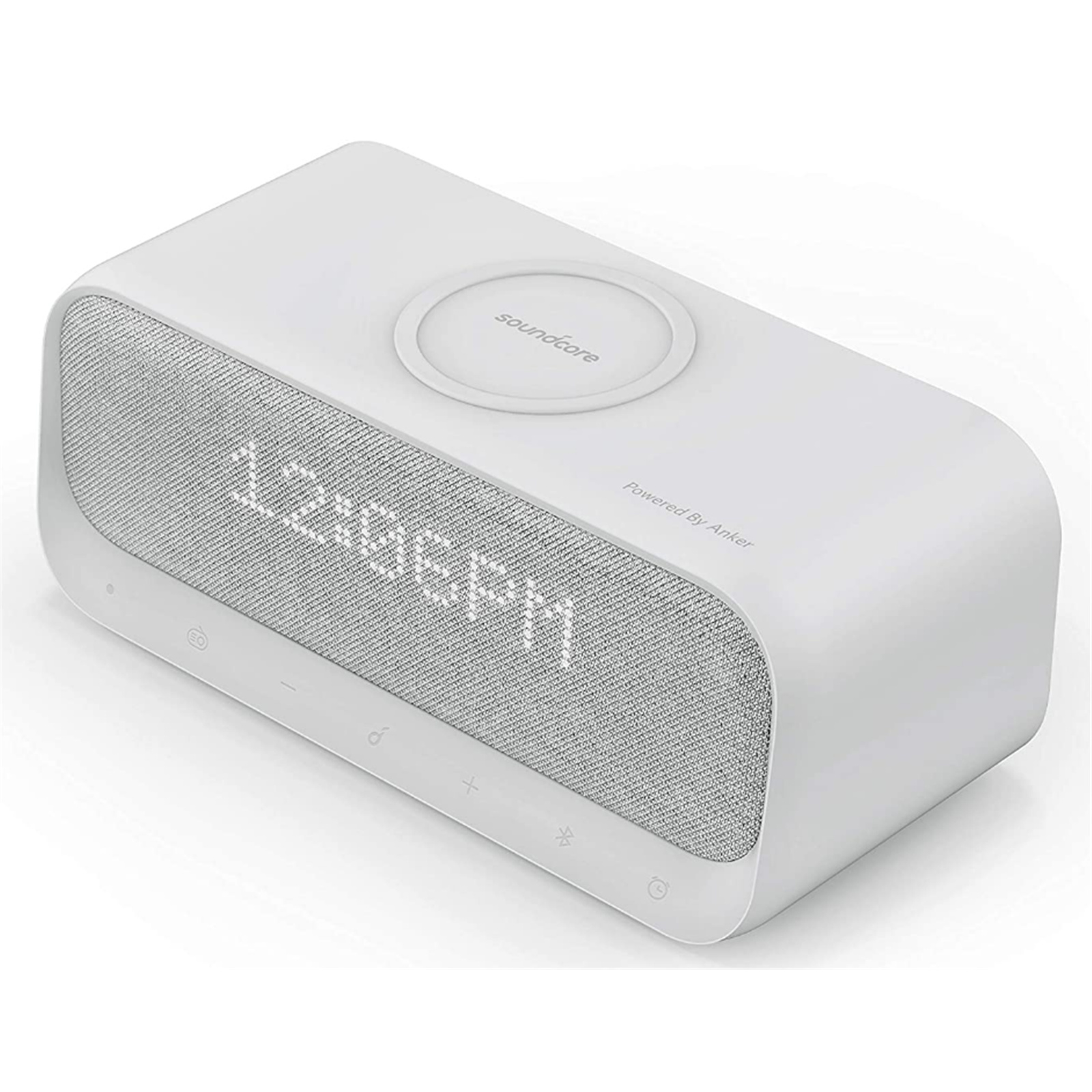 Soundcore by Anker Wakey Bluetooth Alarm Clock Stereo Speaker with Built-in 10W Qi Wireless Charging FM Radio / Aux Input - 2x USB Power Outputs - White Noise & Ambient Sleep Sounds