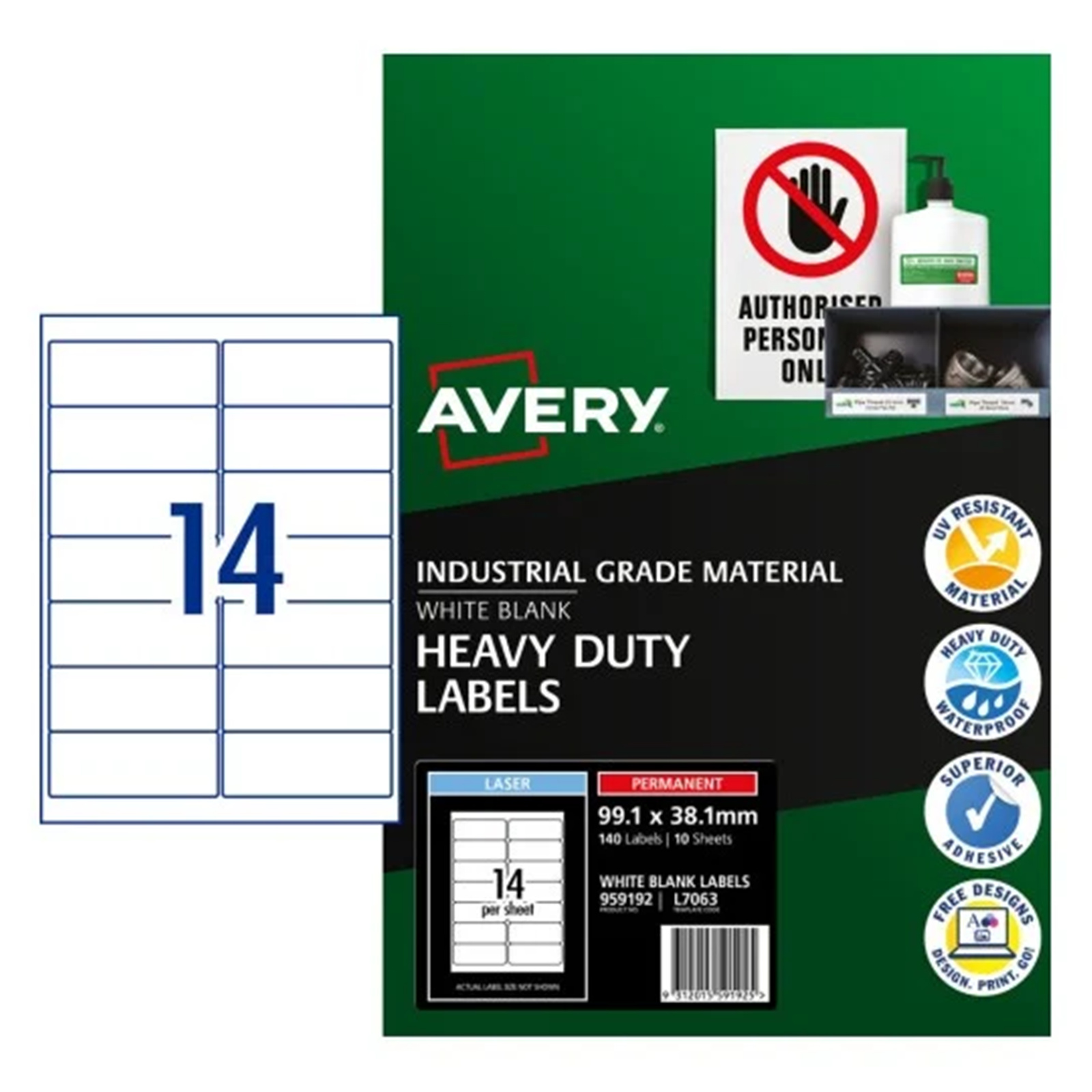 AVERY 959192 Avery Heavy Duty ID Label L7063 White Laser 99.1x38.1mm 14up 10 Sheets