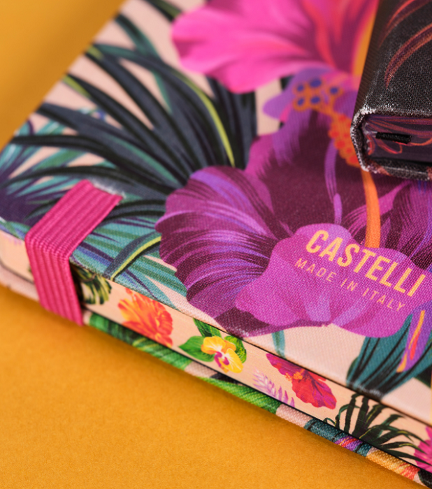 Eden Collection brings tropical inspiration to everyday creativity, offering the perfect blend of style and functionality. Discover the Castelli Notebook Eden collection, featuring notebooks, diaries, and padfolios with vibrant tropical design printing on recycled PET fabric covers and carefully colour matching details. Designed to stand out while remaining practical, each piece combines eye catching visuals with durable construction.