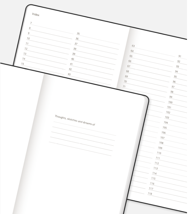 Notebooks Paper: Shiro Echo White. A 100% recycled fiber paper, FSC® certified, distinguished by high-quality technical performance. Shiro is recyclable and produced with zero emissions.