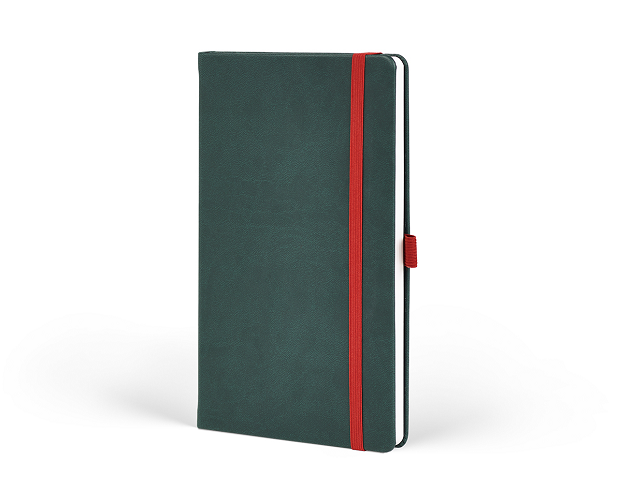 This versatile and practical notebook features a biobased cover with contrasting elastic closure and penloop. Its eco-friendly biobased cover and elegant pine color make it a refined choice for personal and professional settings.