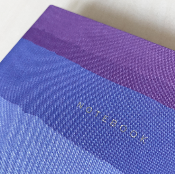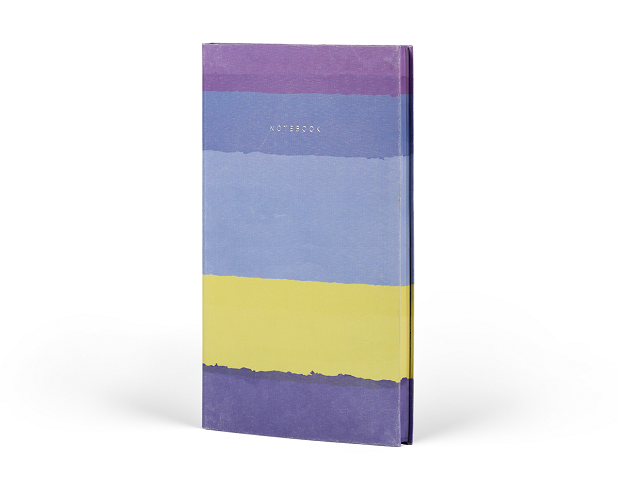 The Castelli Notebook Stripes Mid Ruled in Blueberry features irregular line printing on a recycled PET fabric cover, beautifully blending yellow and violet shades. Its broad range of colorful bands, each uniquely irregular and reminiscent of a hand-painted canvas, creates a visually striking pattern that highlights the rich and expressive blueberry tones.