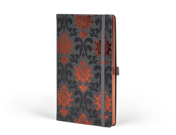 Experience the refined charm of the Castelli Notebook Copper Ruled Baroque, designed for art enthusiasts. Part of the Copper Collection, this notebook features decorative coppery reflections that beautifully enhance its smoke grey cover, combining artistic flair with everyday elegance.
