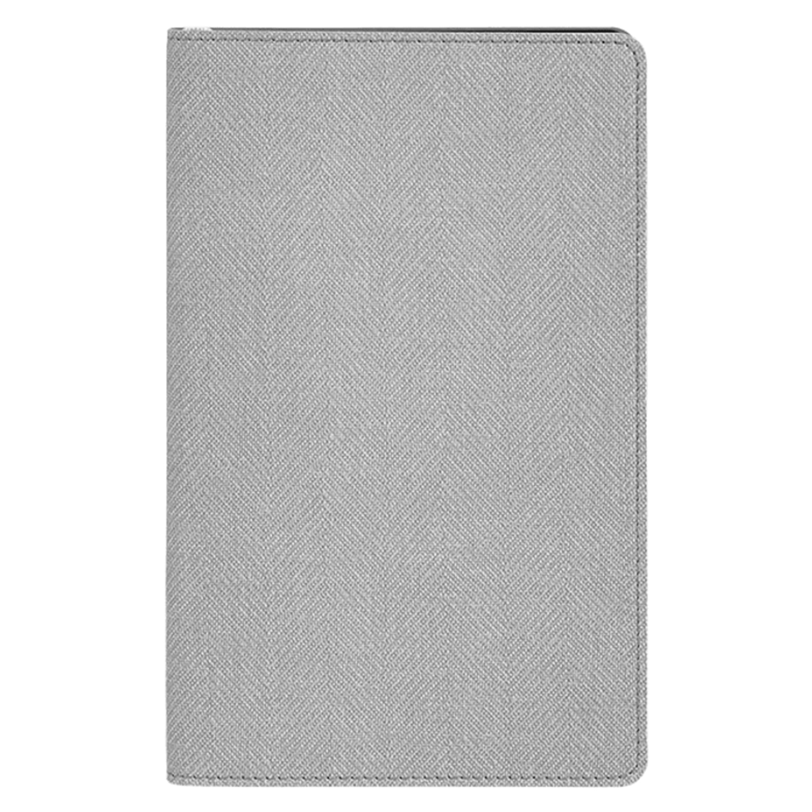 Harris collection notebook with a classic twill weave design flexible cover in cloudy grey, featuring digital printing edges and stitching details. The soft grey hue adds understated sophistication to your workspace, combining practicality with a sleek, modern style.