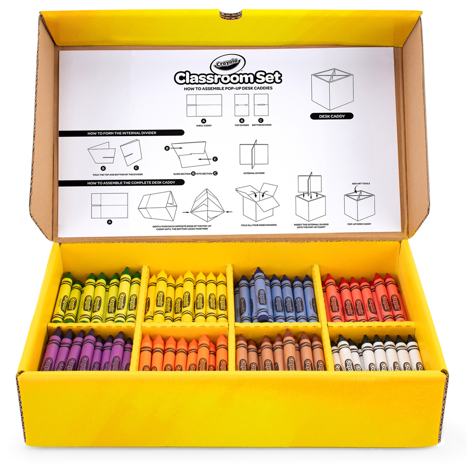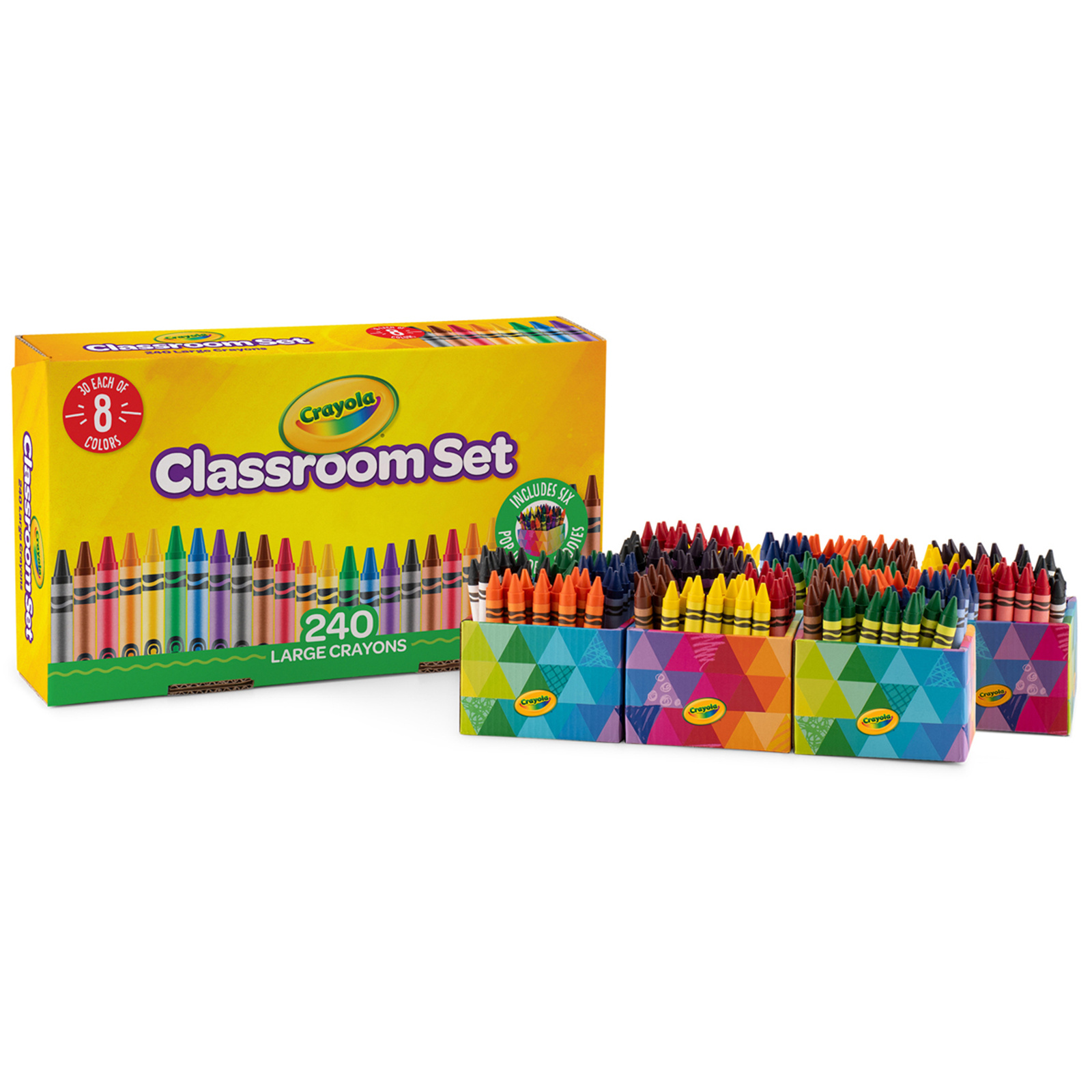 The Crayola Large Crayon Classroom Set is a great option for allowing children to take responsibility for their own learning and build confidence in their abilities. With a smooth laydown, these Large Crayons are ideal for young kids and are easy for them to hold. They're non-toxic for peace of mind. The Crayola 240 Large Crayons Classroom Set includes 30 each of 8 different colors. The set features 6 Pop-Up Desk Caddies which have been designed to store and share art tools on classroom tables.