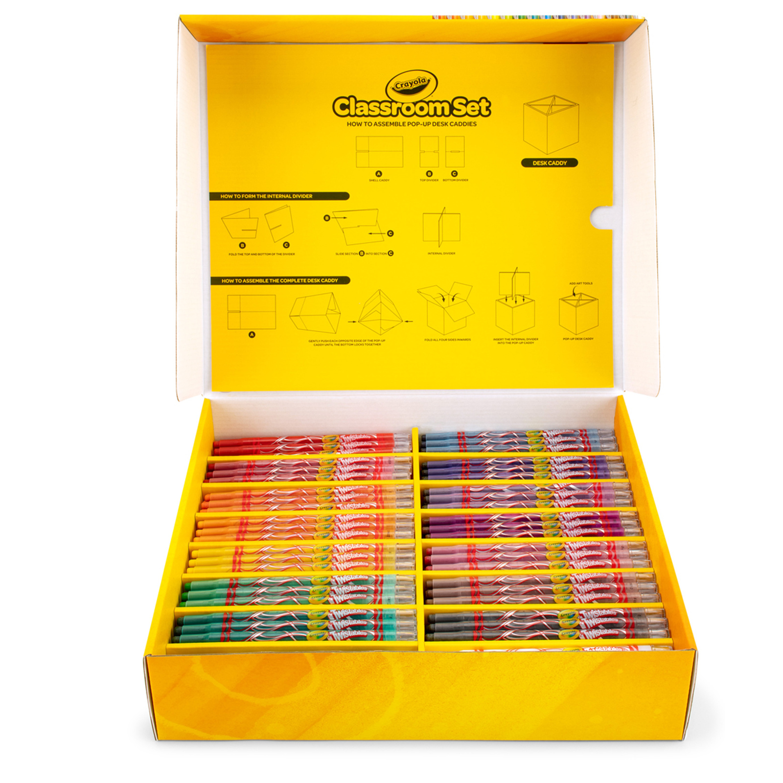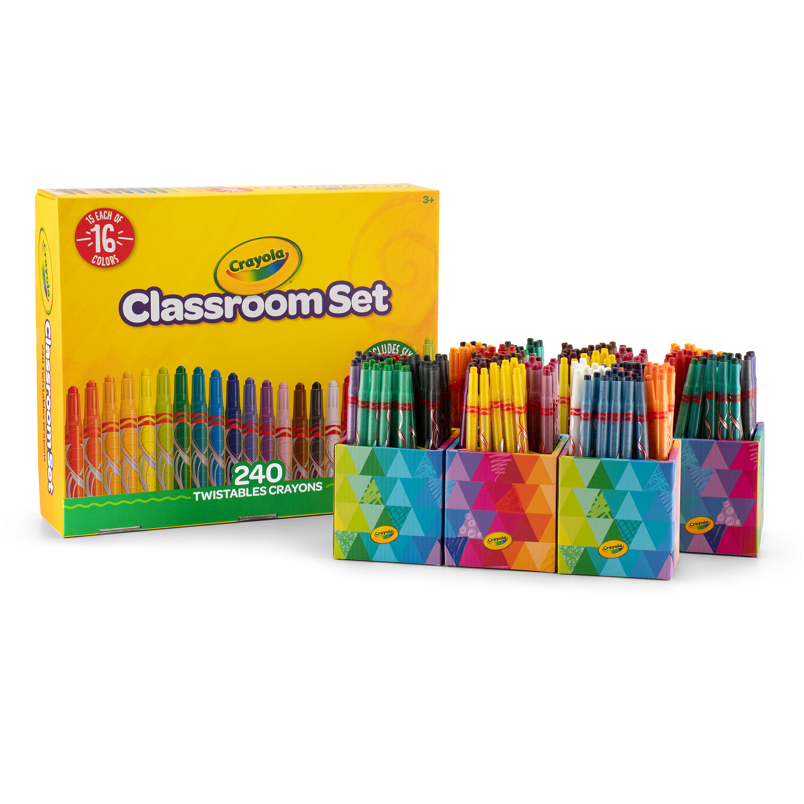 The Crayola Twistable Crayons Classroom Set of 240 is a great option for schools and classrooms, offering a large quantity of crayons that are easy to use and mess-free. This set includes 240 vibrant, twistable crayons that don't require sharpening, making them convenient for both teachers and students. The crayons come in a variety of colours, perfect for art projects, colouring books, and other creative activities. They feature a twist-up design that keeps the crayon tip intact, reducing waste and the need for sharpening. The Crayola 240 Twistable Crayons Classroom Set includes 15 each of 16 different colors. The set features 6 Pop-Up Desk Caddies which have been designed to store and share art tools on classroom tables.
