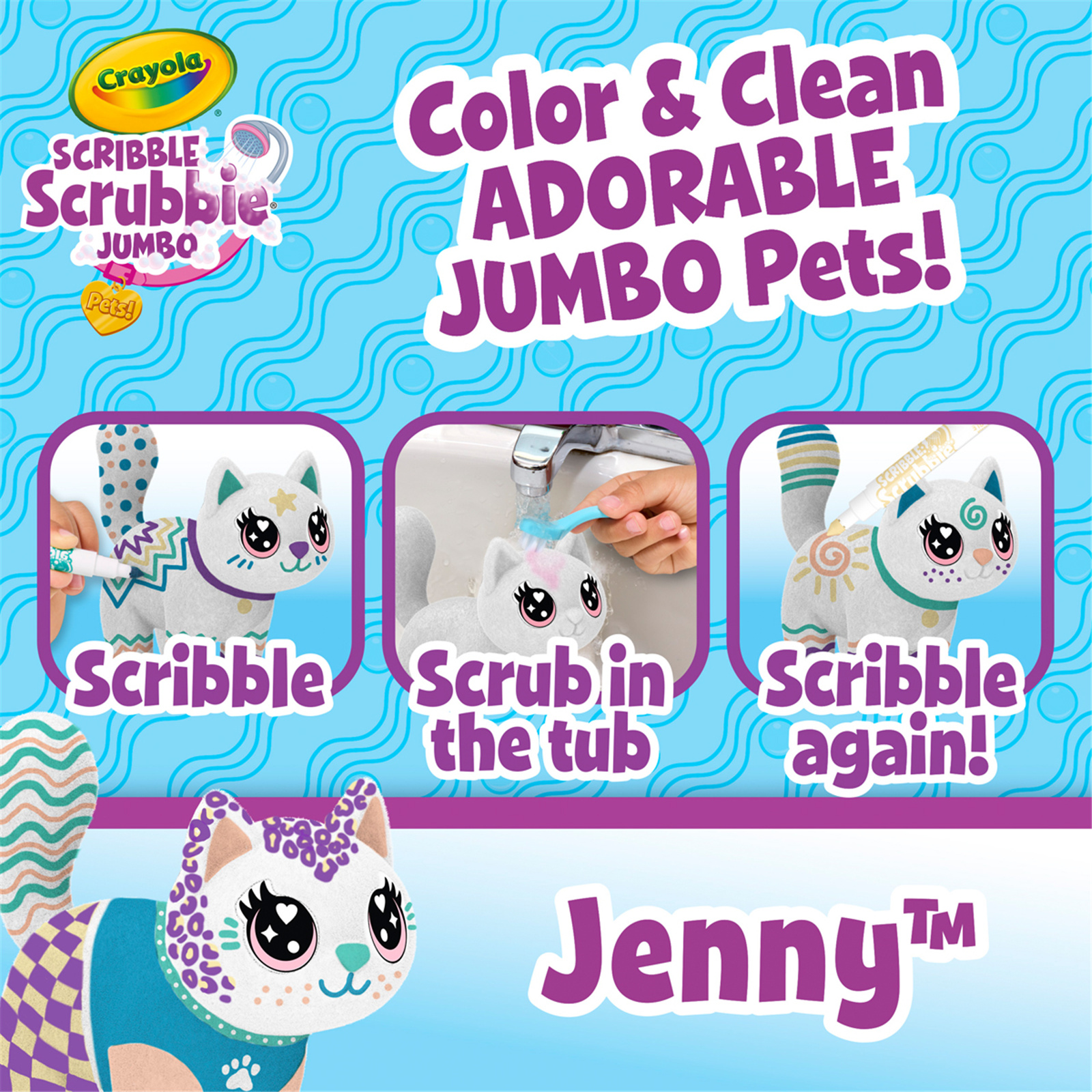 Ideal birthday or holiday gift for girls and boys. Jenny is the purr-fect addition to any existing Scribble Scrubbie Collection or a great start on a new one.